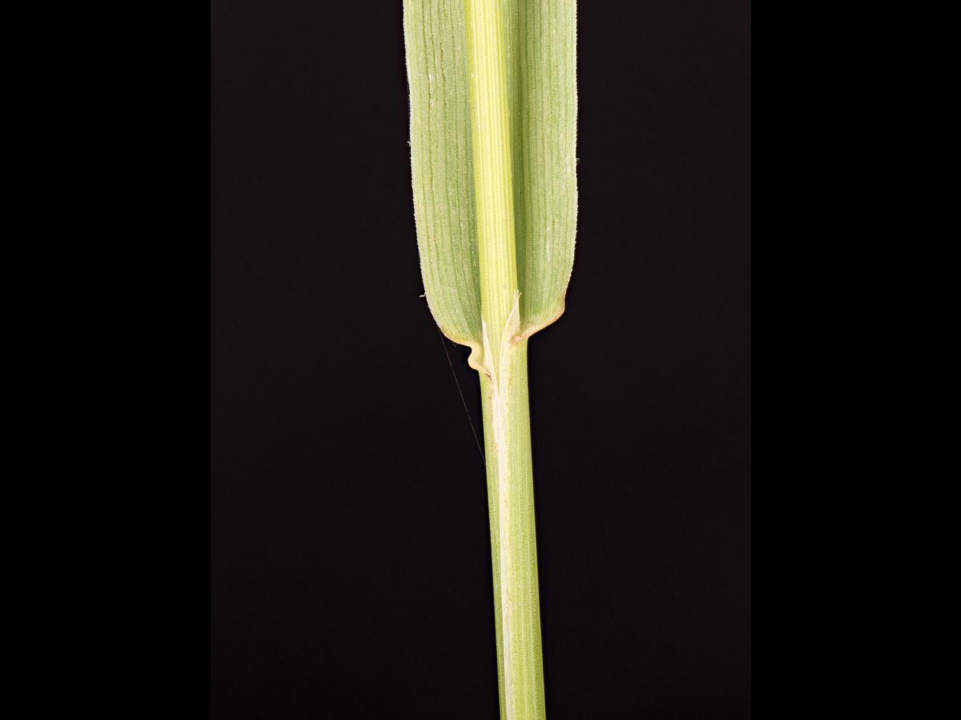 Les feuilles sont de couleur vert pâle à vert grisâtre. Le limbe est plat, glabre, un peu rugueux aux marges et mesure jusqu’à 45 cm de longueur et de 4 à 8 mm de largeur. La ligule est membraneuse et mesure de 1,5 à 3 mm de longueur. Elle est irrégulière, le sommet est pointu et une encoche est présente de chaque côté. La gaine est glabre et fendue avec les marges se chevauchant. Les oreillettes sont absentes.