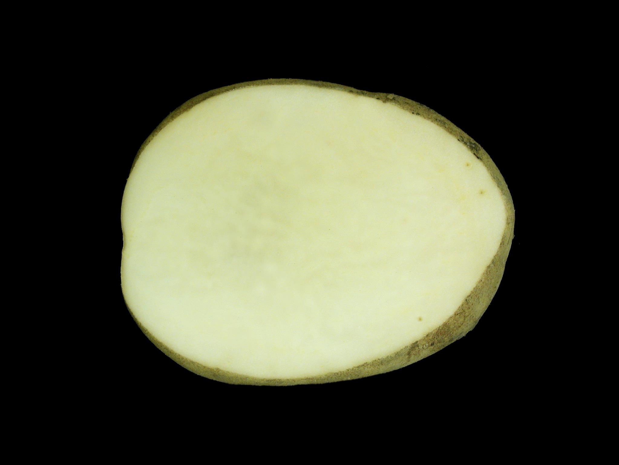 Description: Un tubercule de pomme de terre (cv 'FL-1879') provenant d’un entrepôt montre trois points bruns de moins de un millimètre de diamètre dans la chair du cortex. Les tests de laboratoire ont révélé la présence du nématode Meloidogyne hapla, responsable de la nodosité des racines chez la pomme de terre.