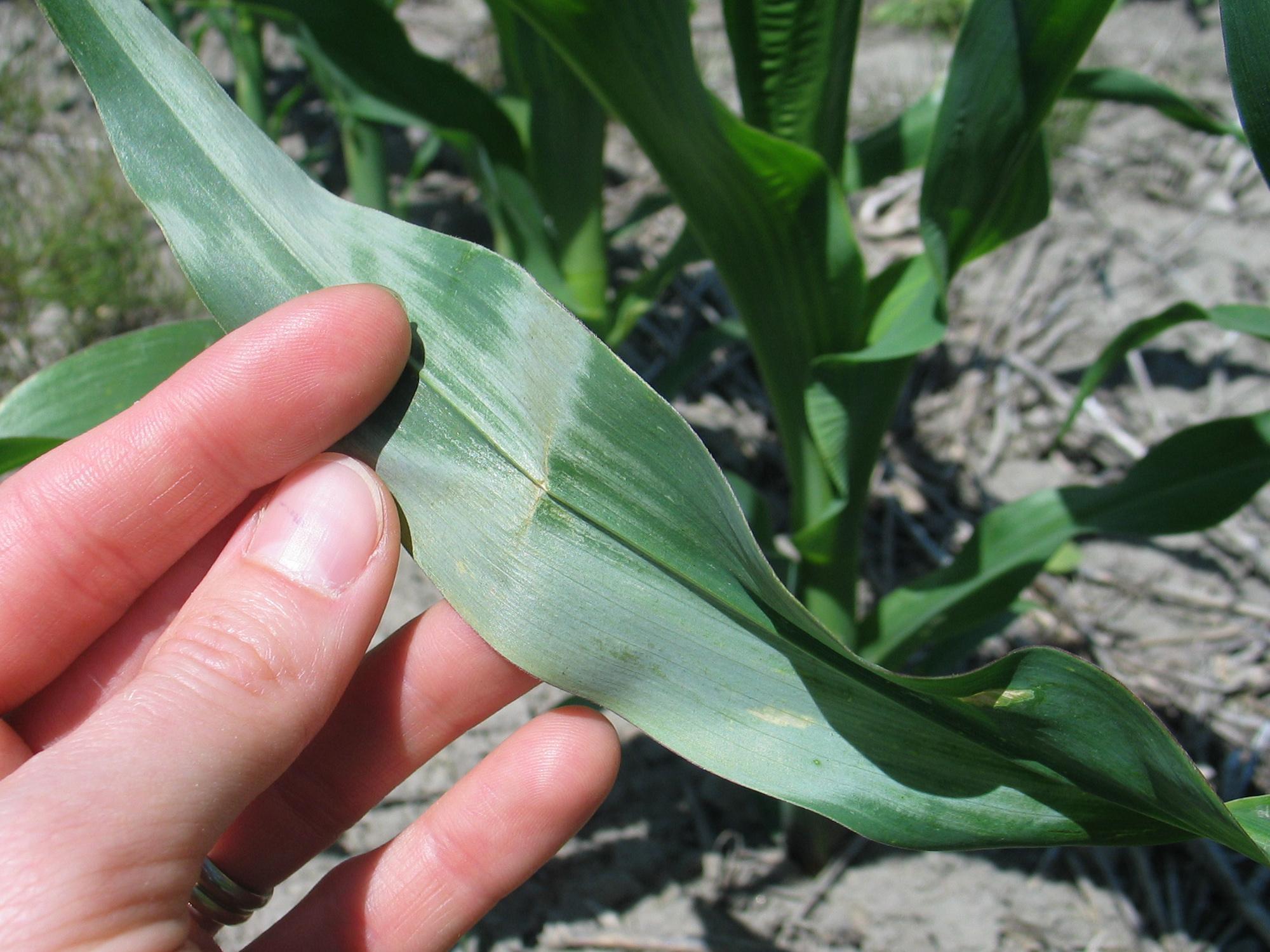 Légende: Teinte argentée sur feuille de maïs grain et fourrager