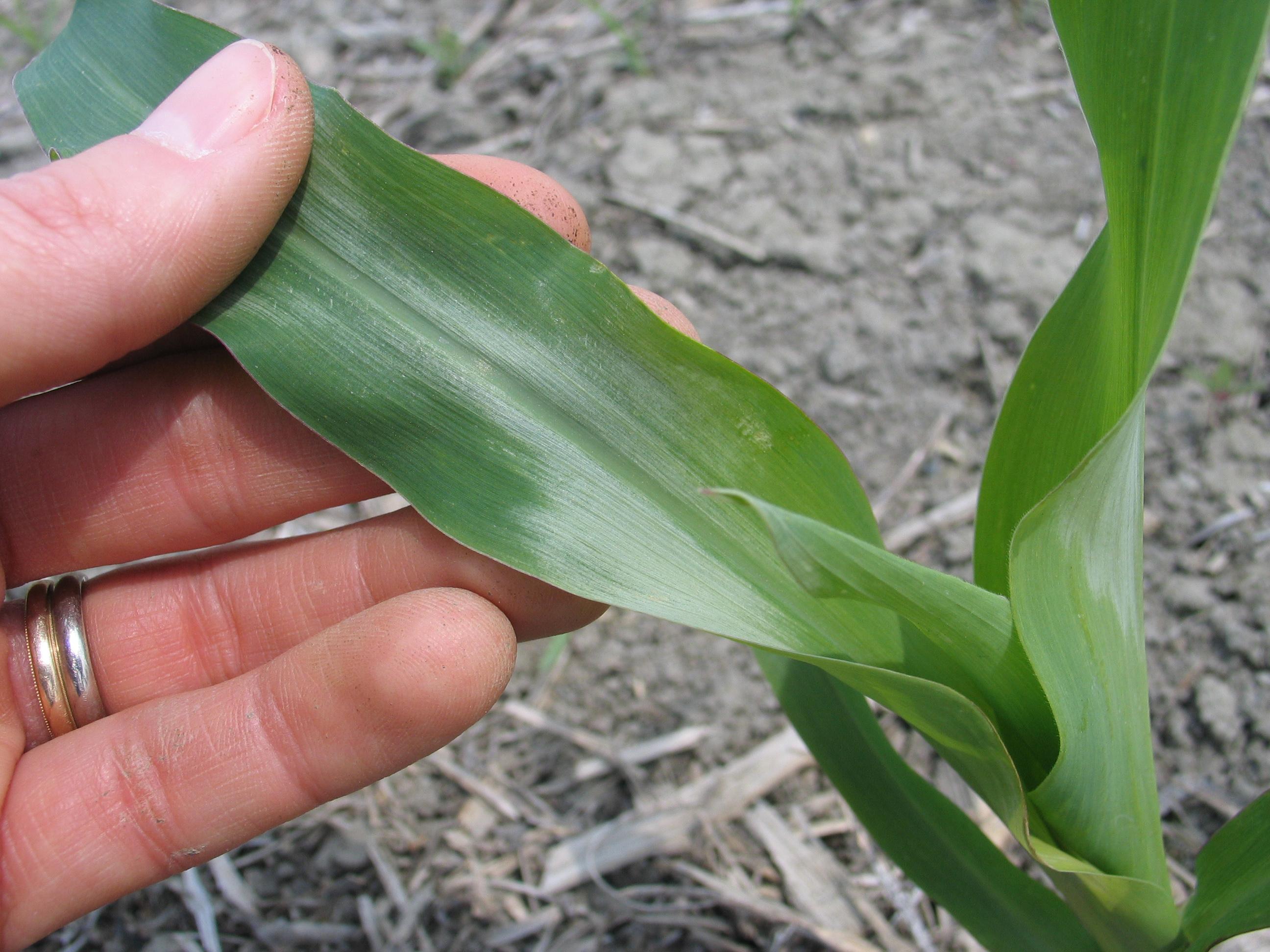 Légende: Teinte argentée sur feuilles de maïs grain et fourrager