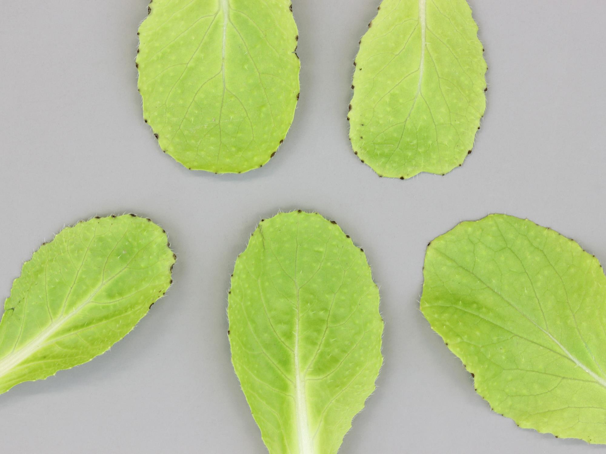 Légende: Taches noires à la marge des feuilles de chou chinois