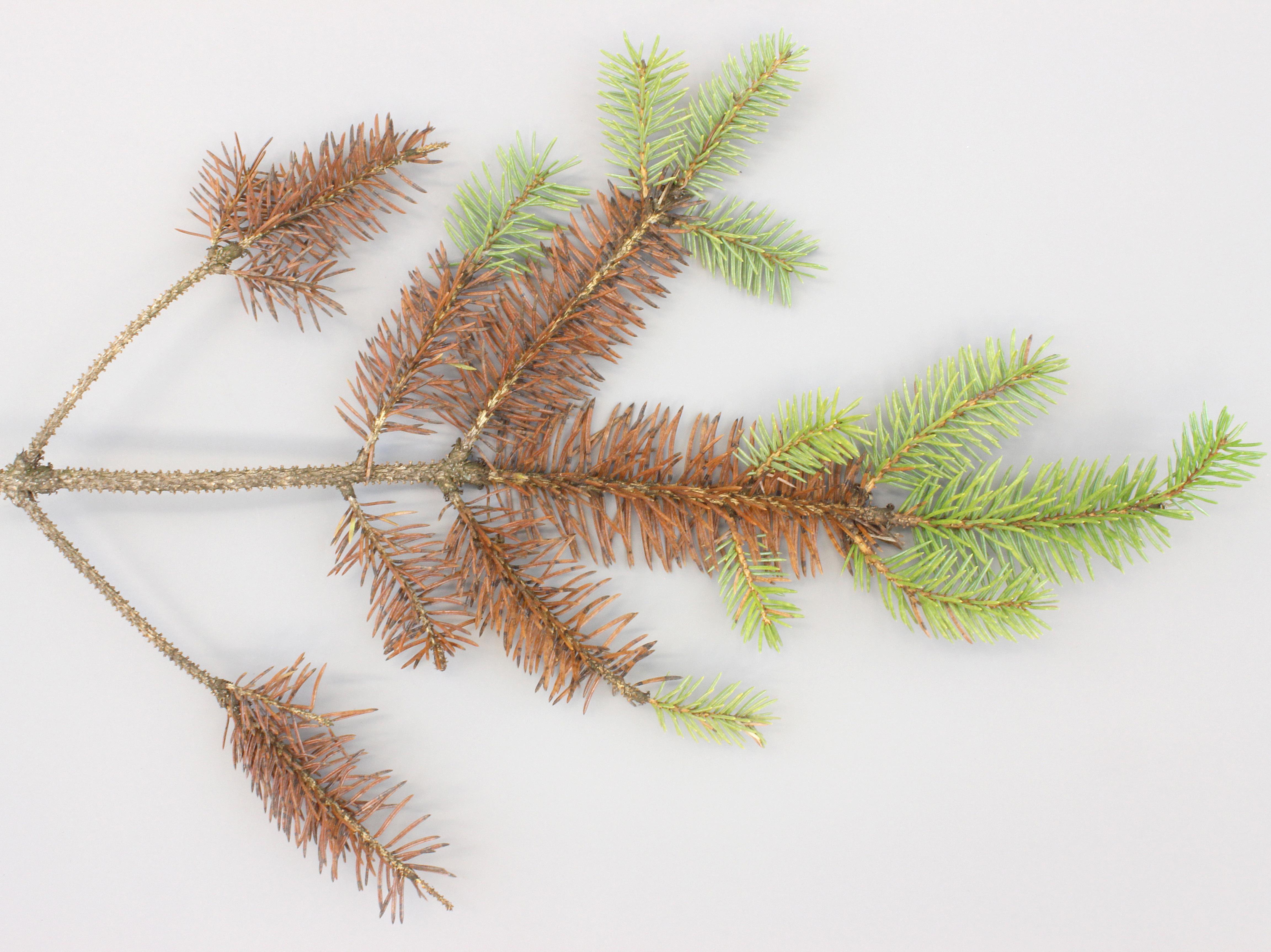 Légende: Brunissement des aiguille sur épinette bleue du Colorado