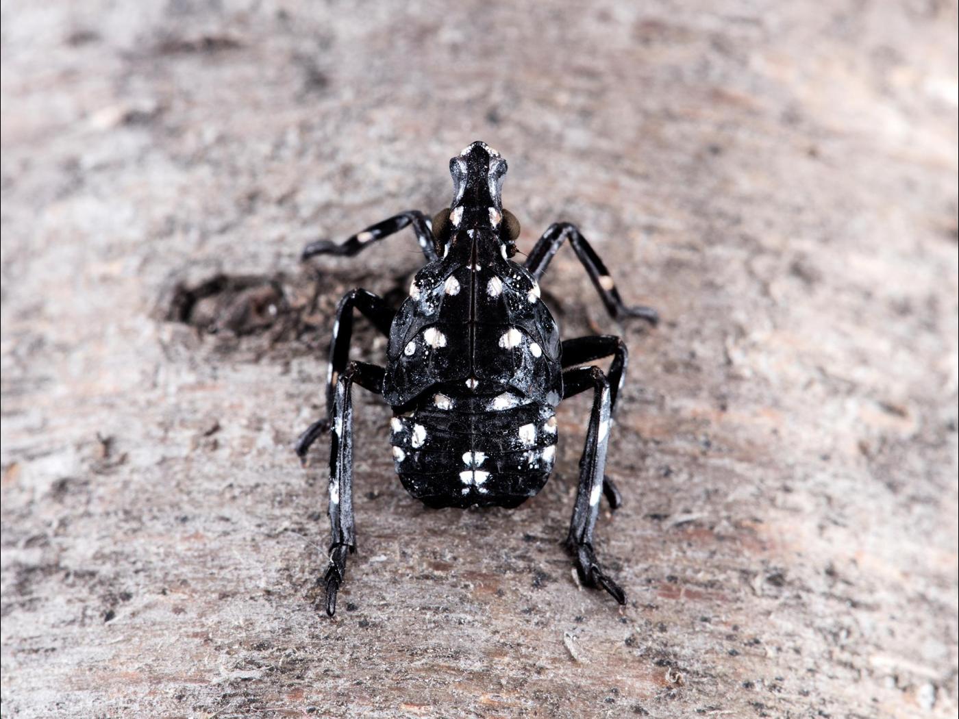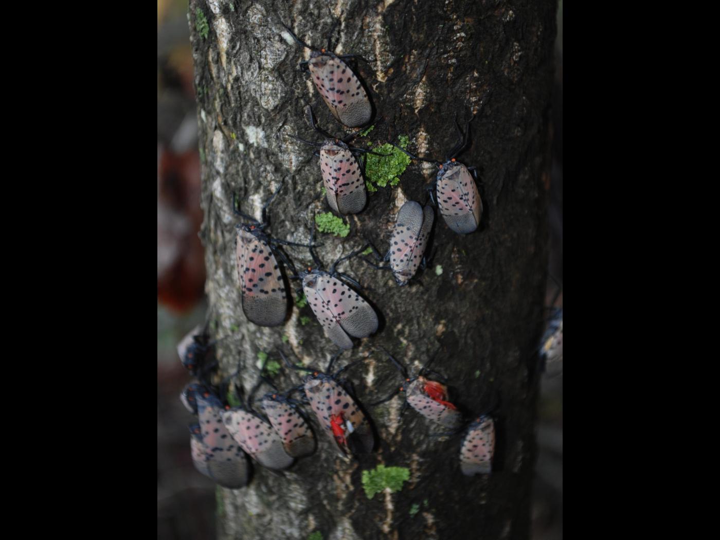Dépistage : L’observation visuelle des plantes, particulièrement des troncs, est la seule méthode de dépistage efficace pour le moment. Les masses d’oeufs ressemblent à une trace de boue séchée sur le tronc et peuvent facilement être identifiées. L’installation de bandes collantes sur les troncs d’arbres peut faciliter l’observation des larves qui tentent de remonter vers la canopée après avoir chuté.