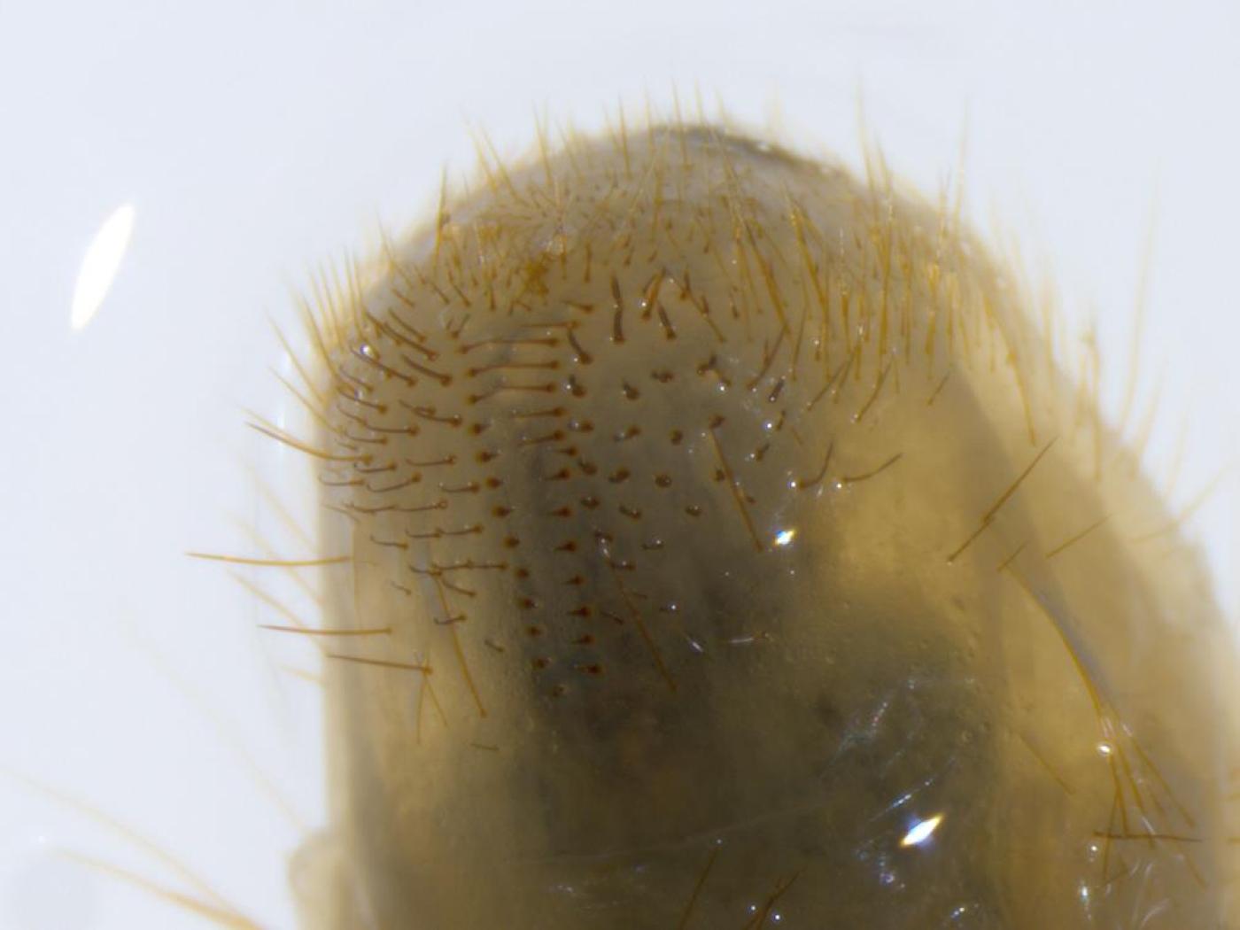 Oeuf : 0,73 mm à la ponte, atteignant 2,75 mm avant l’éclosion; il est ovale et luisant.