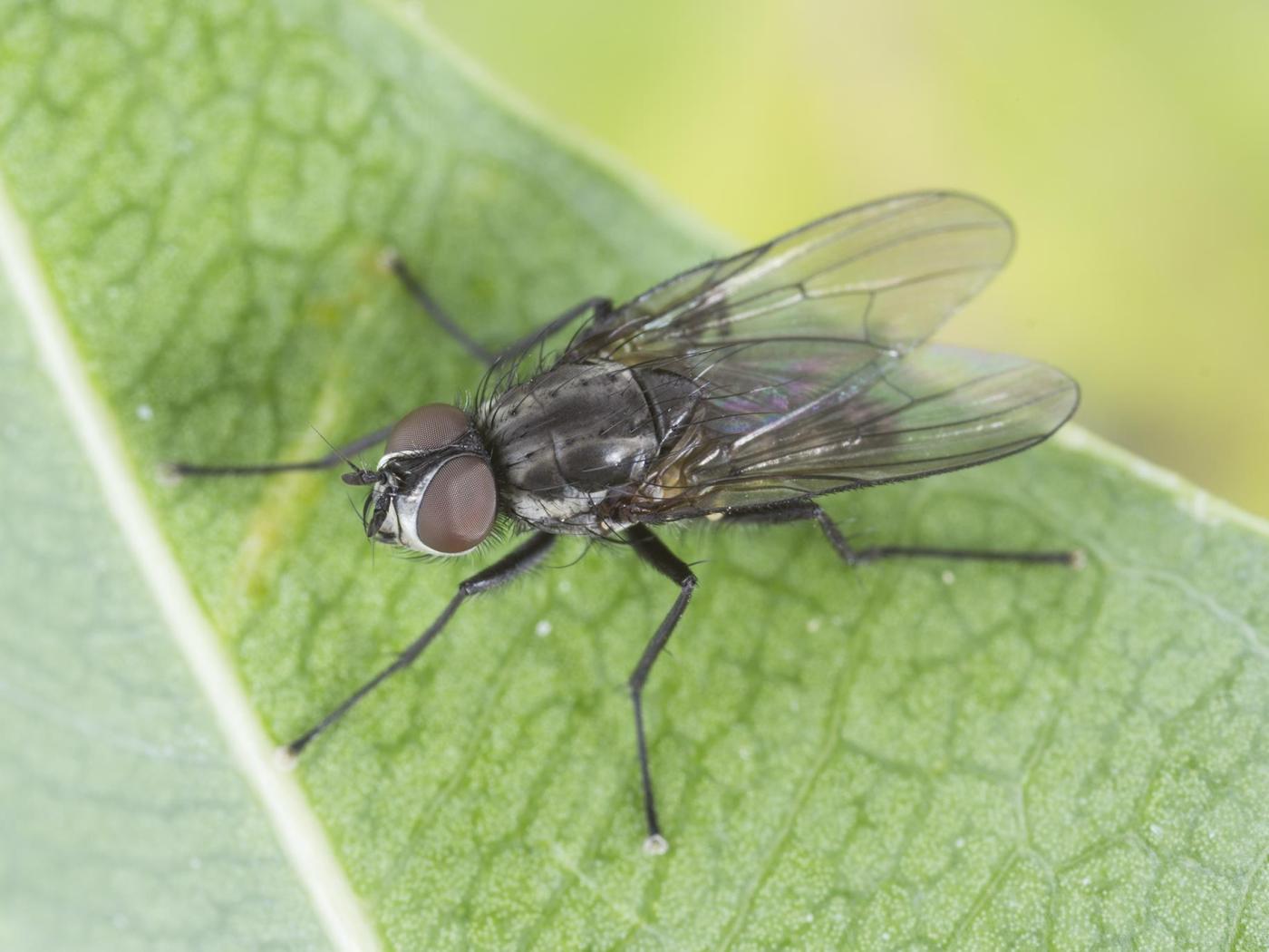Adulte : 6,0 à 8,0 mm; il est semblable à une mouche domestique; le corps est gris pâle et recouvert de longues soies noires; les pattes longues et noires portent de longues soies; au repos, les ailes se croisent au-dessus de l'abdomen; cette espèce est très difficile à différencier des autres mouches du genre Delia.