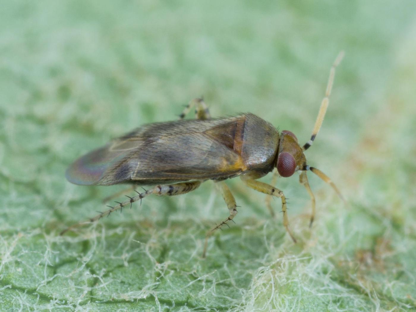 La punaise de la molène est une espèce originaire d'Europe qui a été introduite en Amérique du Nord avant le début des années 1900. Cette espèce produit de deux à trois générations par année. L'hibernation se fait au stade d'oeuf, ceux-ci ayant été insérés dans l'écorce des jeunes rameaux de pommiers durant l'automne. Au printemps, l'éclosion des oeufs commence au début de la floraison et se continue jusqu'à ce que les pommiers atteignent le stade de calice. Les nymphes vont ensuite commencer à se nourrir de la sève des feuilles ainsi que sur les jeunes fruits en développement. Après avoir complété leur développement nymphal sur les plants de pommiers, la majorité des punaises migre vers les plants de molène présents en périphérie des vergers. Elles y restent pour le reste de l'été pour y compléter une seconde génération et ce n'est qu'à l'automne que les femelles gravides retournent sur les pommiers pour y pondre les oeufs hibernants.