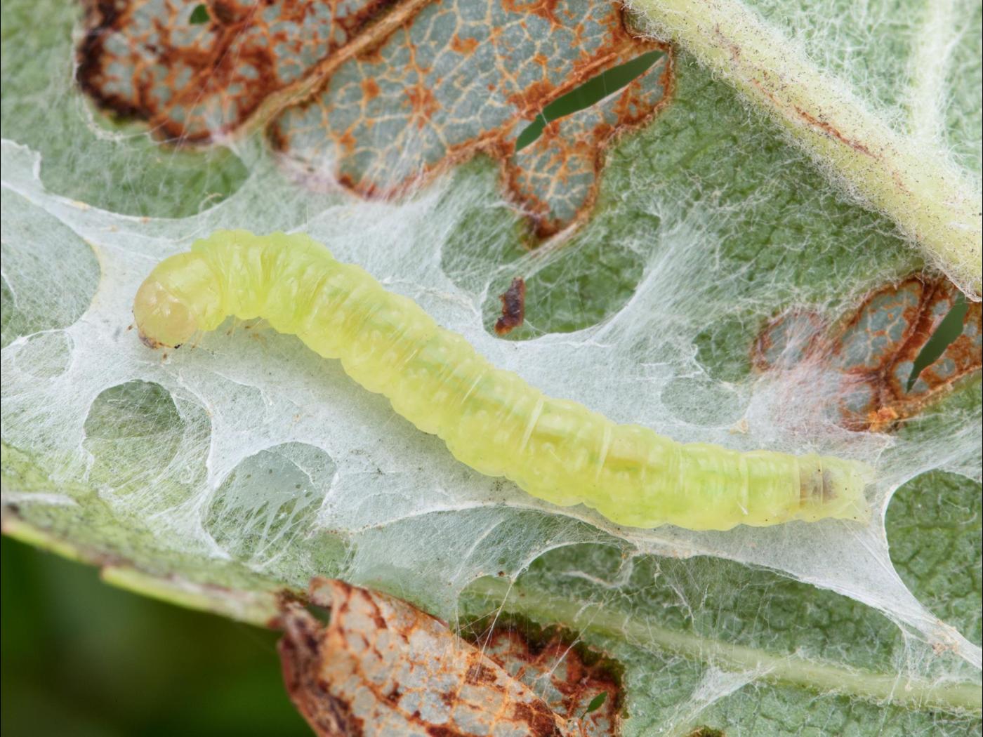 Dans la culture de la pomme, les nouveaux adultes émergent peu après le débourrement (fin avril). Lors du stade du bouton rose, les femelles commencent à pondre une cinquantaine d’œufs en masse aplatie directement sur les troncs et sous les branches des arbres. Lorsque les pétales des fleurs des pommiers commencent à tomber, vers la fin du mois de mai, les œufs éclosent et les jeunes larves se déplacent en quête de nourriture, généralement des nouvelles pousses de l’année et des dards près du centre de l’arbre. Vers la fin du mois de juin, elles se transforment en chrysalide dans un cocon de soie tissé à partir d’une feuille enroulée.