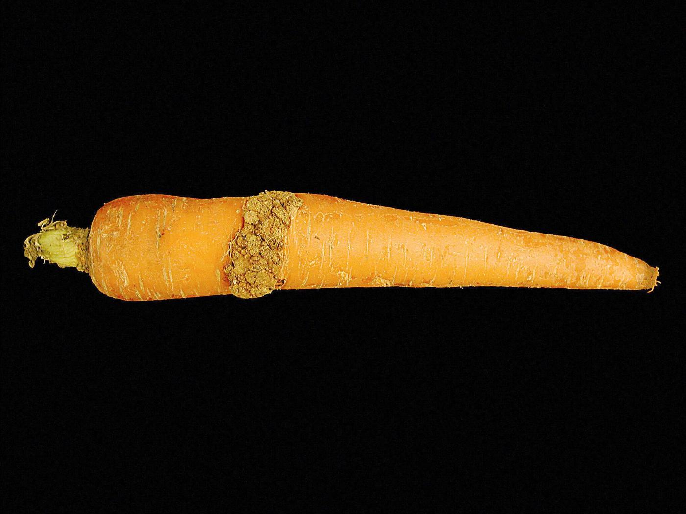 Chez la carotte, la tumeur du collet et une maladie occasionnelle et mineure. Les petites tumeurs sont enlevées lors du lavage et les carottes plus affectées sont déclassées.