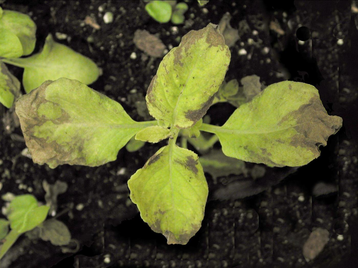 Peronospora est un parasite obligatoire de la classe des oomycètes rapporté pour causer le mildiou chez les plantes ornementales, les céréales et les plantes légumières. Il tue rarement ses hôtes puisqu’ils sont nécessaires à sa survie. Cette maladie se développe dans les régions au climat frais et humide. Chez les plantes ornementales, le mildiou est occasionnel et mineur, mais peut être sévère si les conditions sont propices à son développement. Le coléus, le basilic et l’impatiente sont particulièrement sensibles. C’est la qualité esthétique des plantes qui est affectée, les rendant invendables. Les plantes cultivées en champ ou sous tunnel sont les plus vulnérables et la maladie apparaît en foyer.