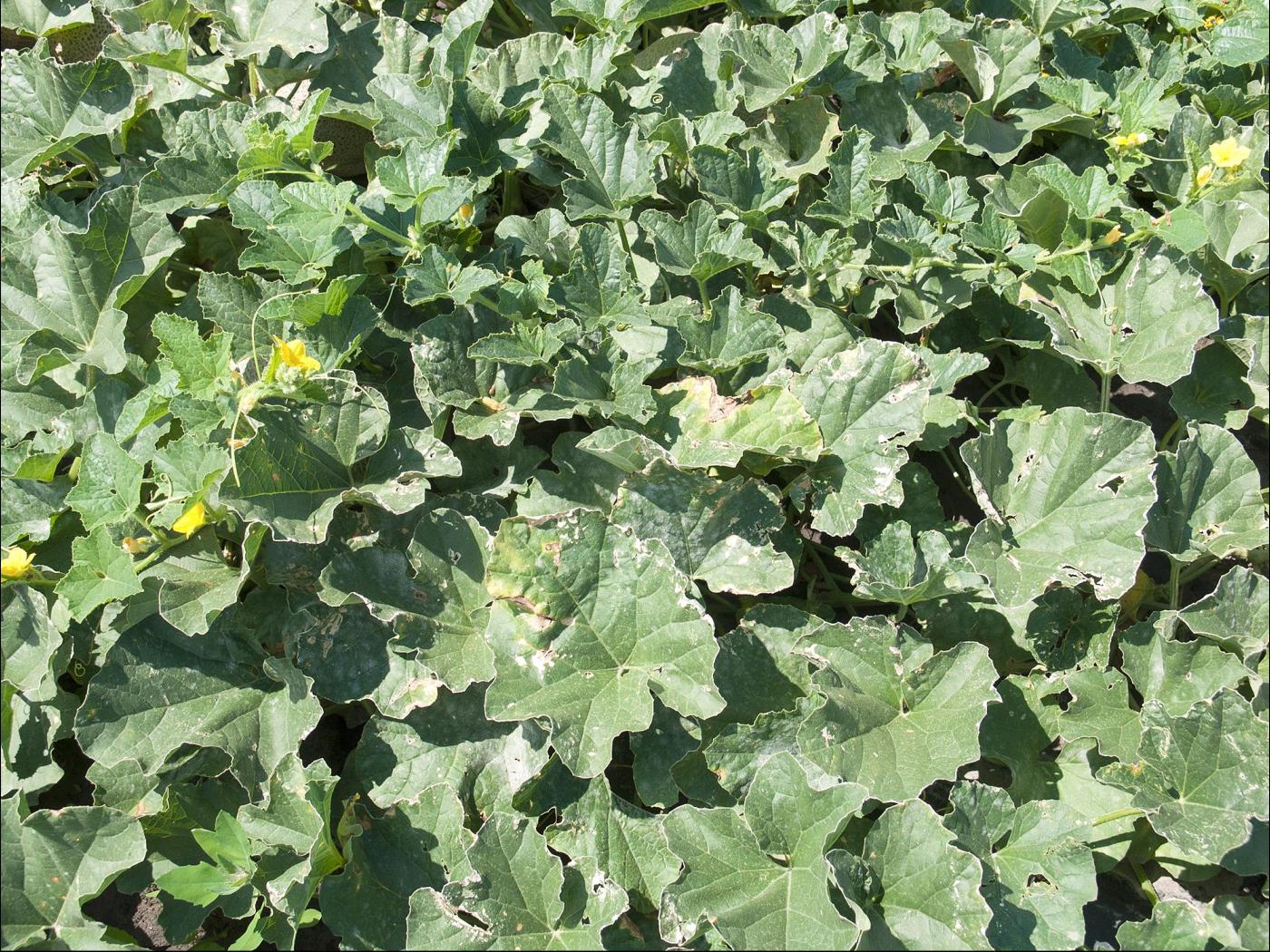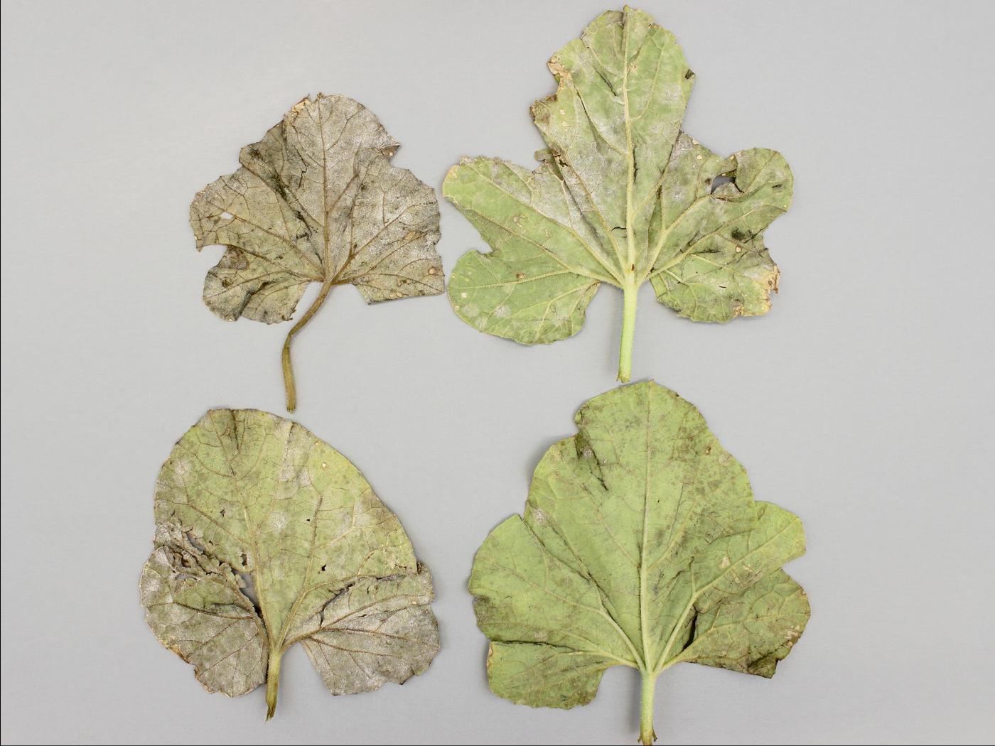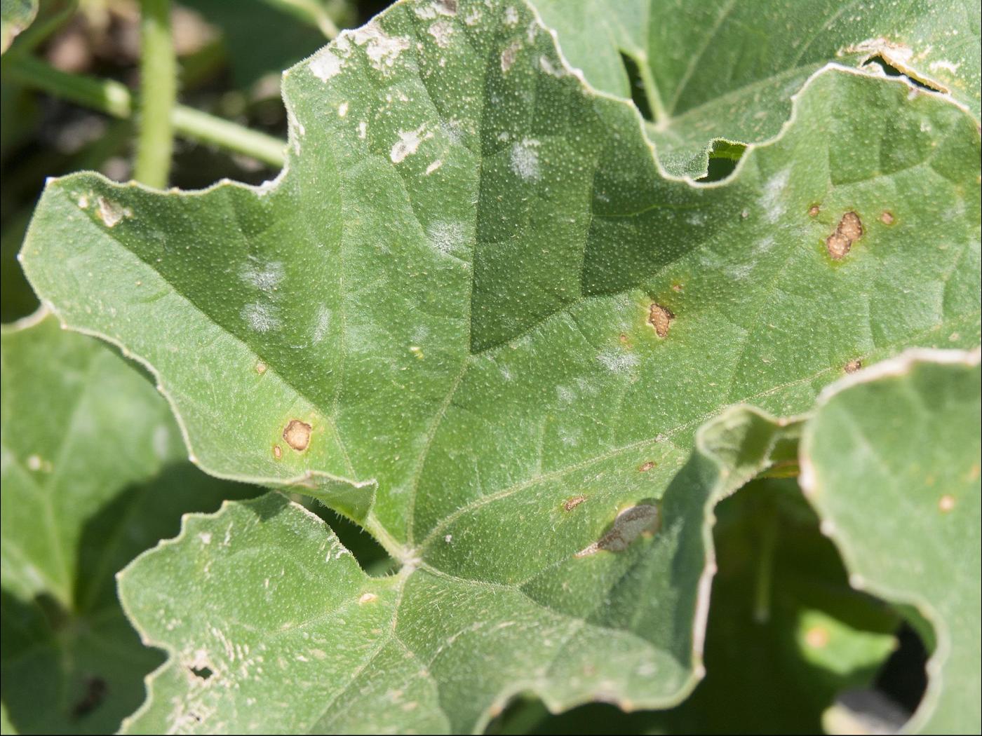 Légende: Mycélium blanc sur feuilles de melon brodé