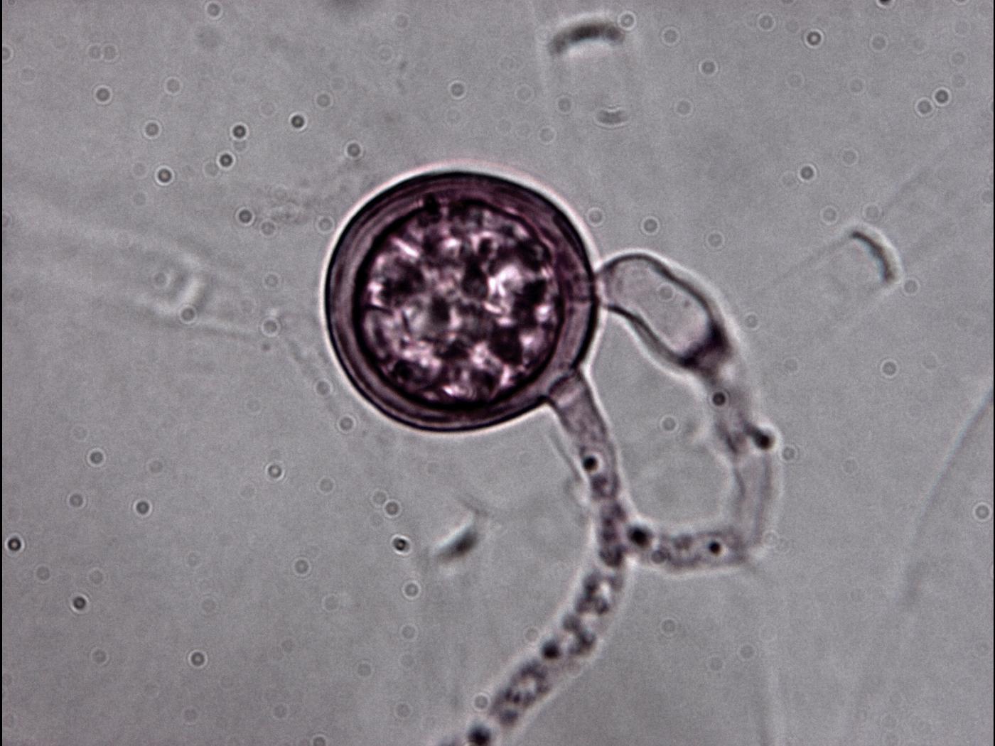 Chlamydospores : également terminales ou intercalaires, elles ressemblent à des oogones, mais avec une paroi plus épaisse. Septées, contrairement aux gonflements d’hyphes, les chlamydospores seraient séparées par une septation.