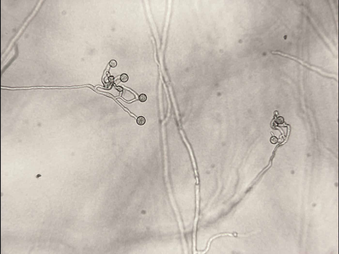Appressoria : observés en périphérie du milieu, pouvant ressembler à des sporanges filamenteux renflés.