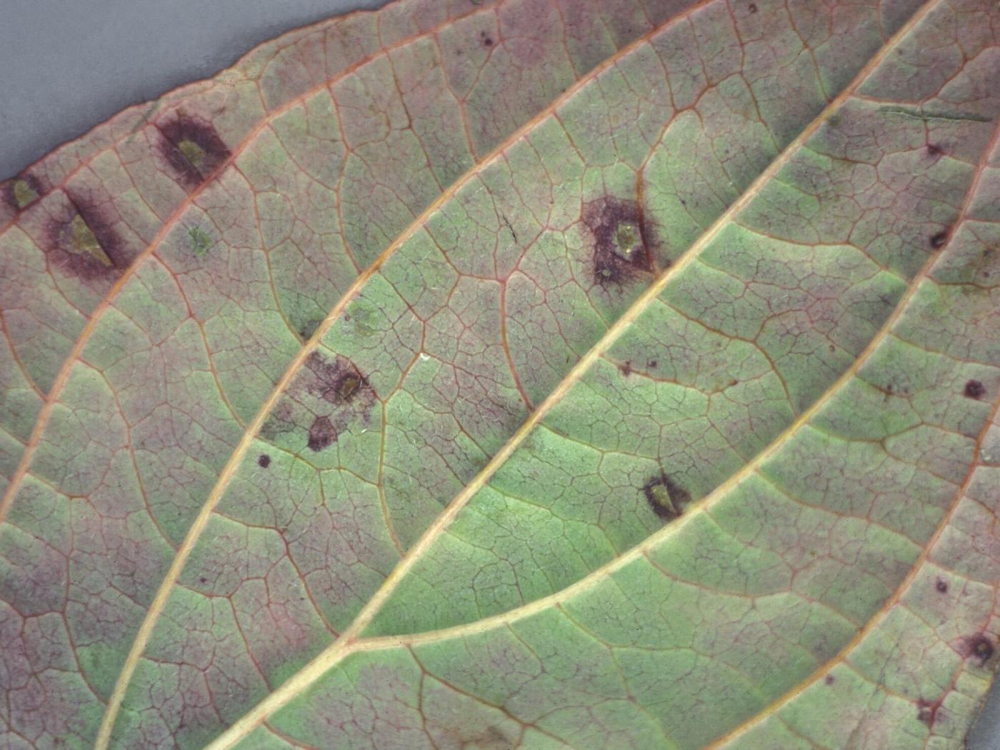 Chez le cornouiller, les symptômes peuvent être confondus avec la tache cercosporéenne (Cercospora cornicola) ou l’anthracnose (Elsinoe corni). Dans le premier cas, il y a absence de pycnides au centre des taches et dans le cas de l’anthracnose, les taches sont très petites. Sur la tige, cette maladie peut être confondue avec l’anthracnose.