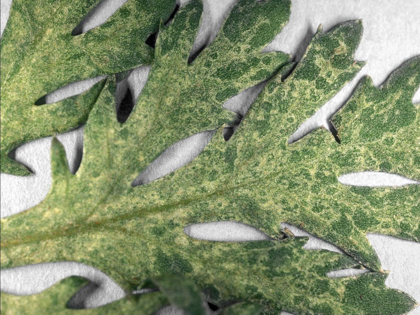 Feuille : présence de jaunissement, de mosaïques ou marbrures, de taches jaunes ou en anneaux, d’une décoloration des nervures, de stries en bandes parallèles aux nervures, de nécroses ou de déformations (pustules vert foncé entre les nervures, gaufrage, feuilles enroulées en forme de cuillère, tordues, etc.).
