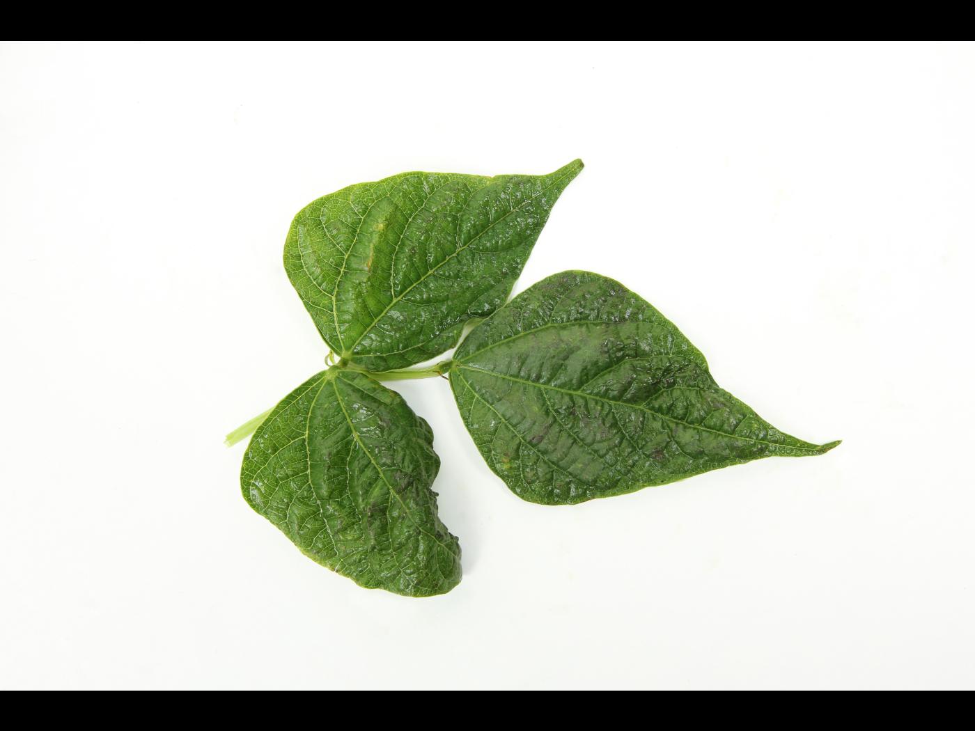 Trois types de symptômes potentiels peuvent être observés sur les feuilles de haricot, mais dans les faits, seul le premier type est observable sur le terrain.