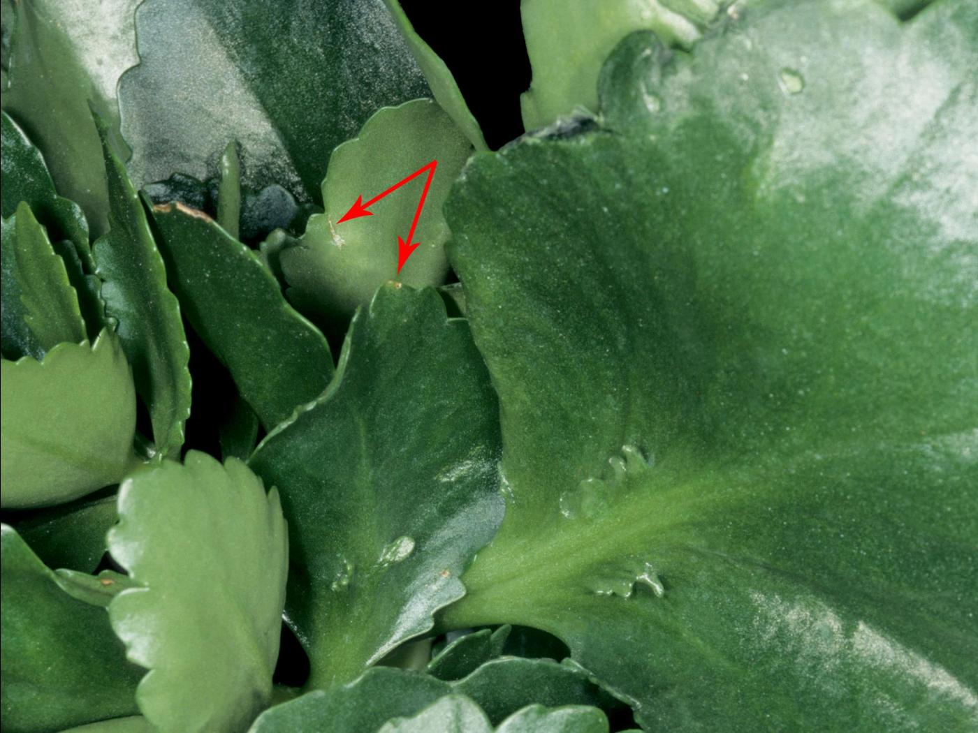 Légende: Minuscules taches brunes sur feuilles de kalanchoe