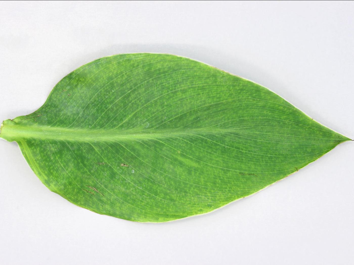 Description: Présence d’une mosaïque jaune pâle répartie sur presque toute la surface de la feuille d'un canna (cv 'Hello Yello') cultivé en pépinière. Les tests ELISA n’ont pas permis de détecter de virus, mais ceux réalisés en microscopie électronique ont révélé la présence de particules virales dans les feuilles. Cependant, la nature du virus n’a pas été précisée.
