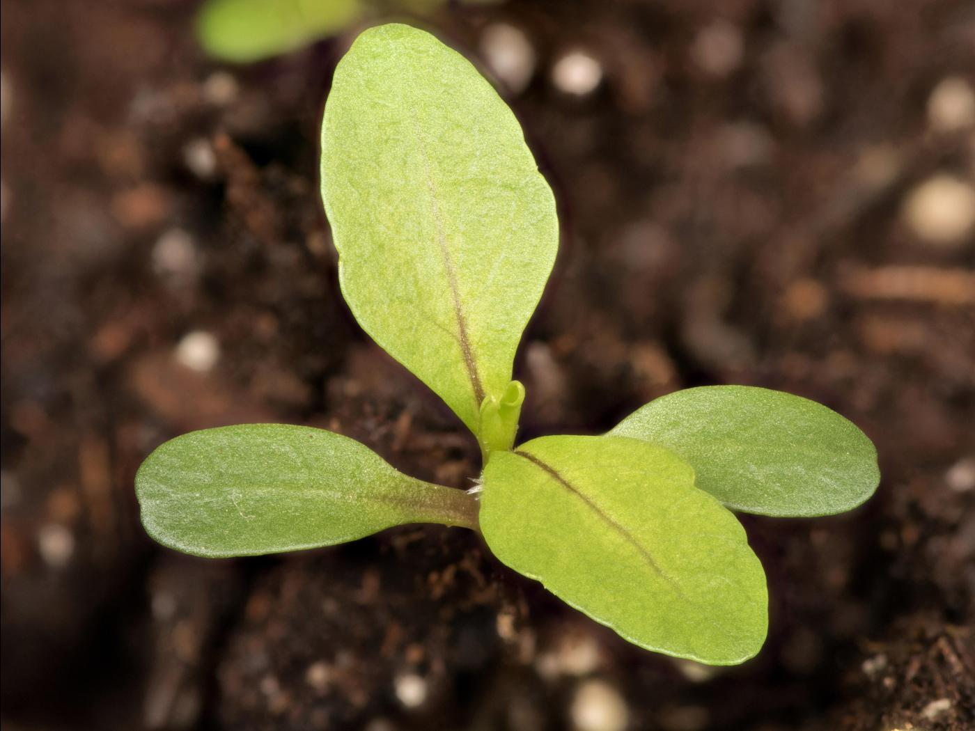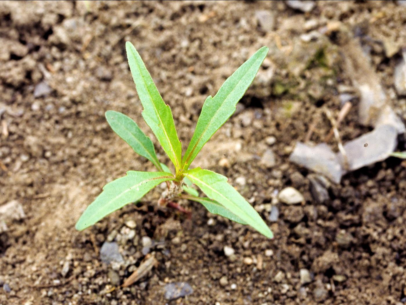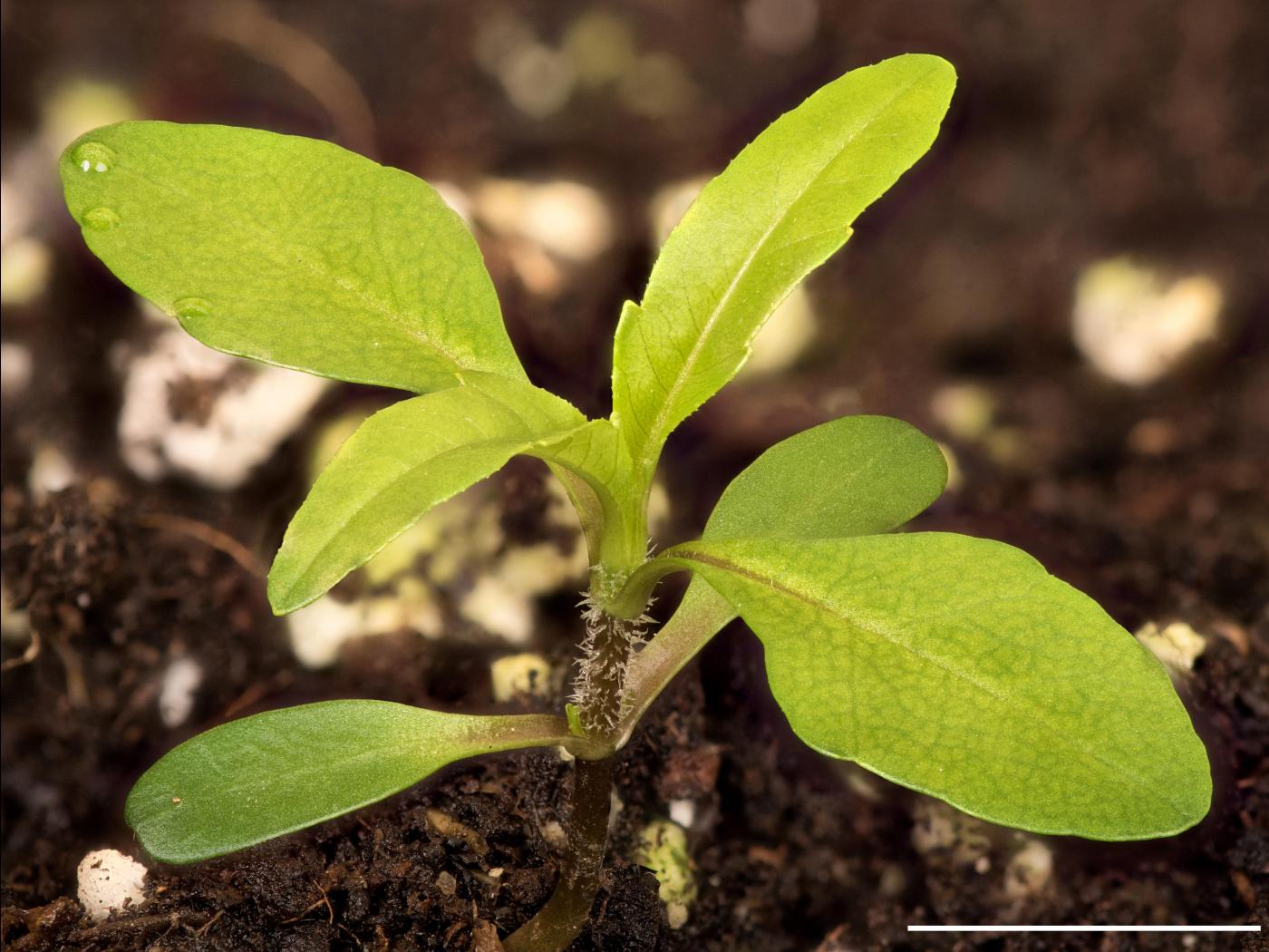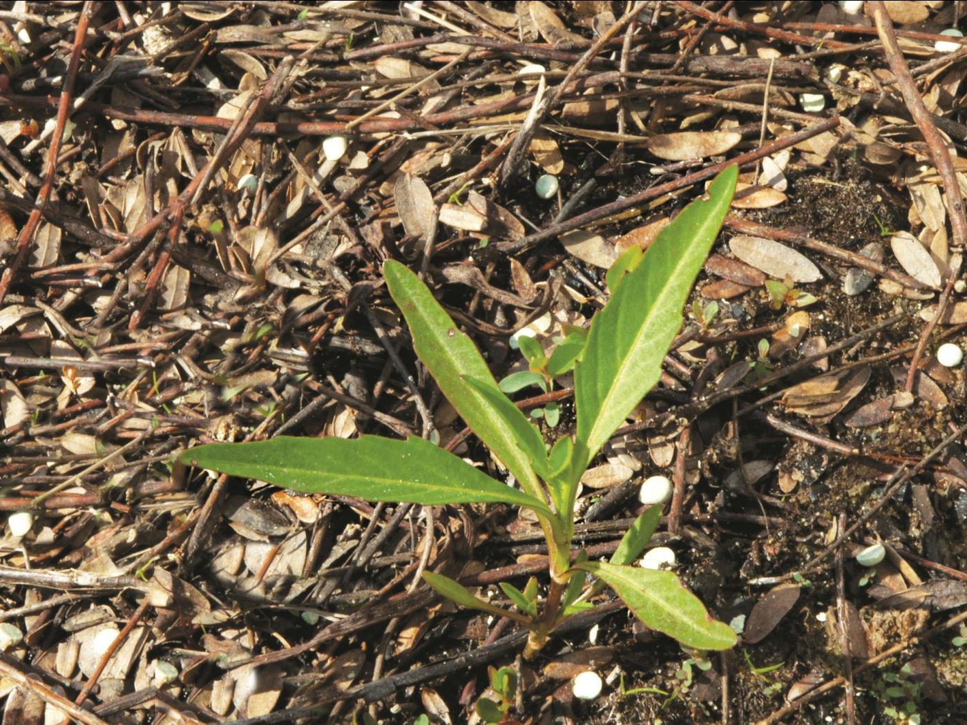 La plantule est à tige et à feuilles opposées. Les cotylédons sont de forme allongée, mesurant environ 5 mm de longueur. Leur nervure centrale est bien visible et ils sont portés par un pétiole distinct. Les premières feuilles sont allongées avec une marge entière à sinuée.