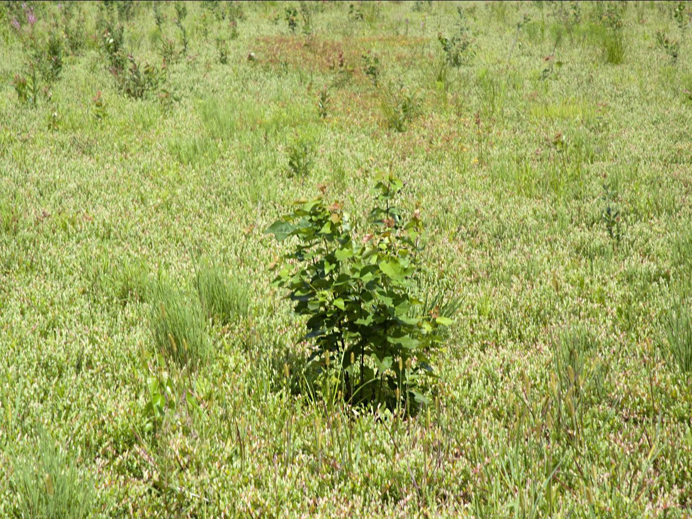 Légende: Plantule dans un champ de canneberges