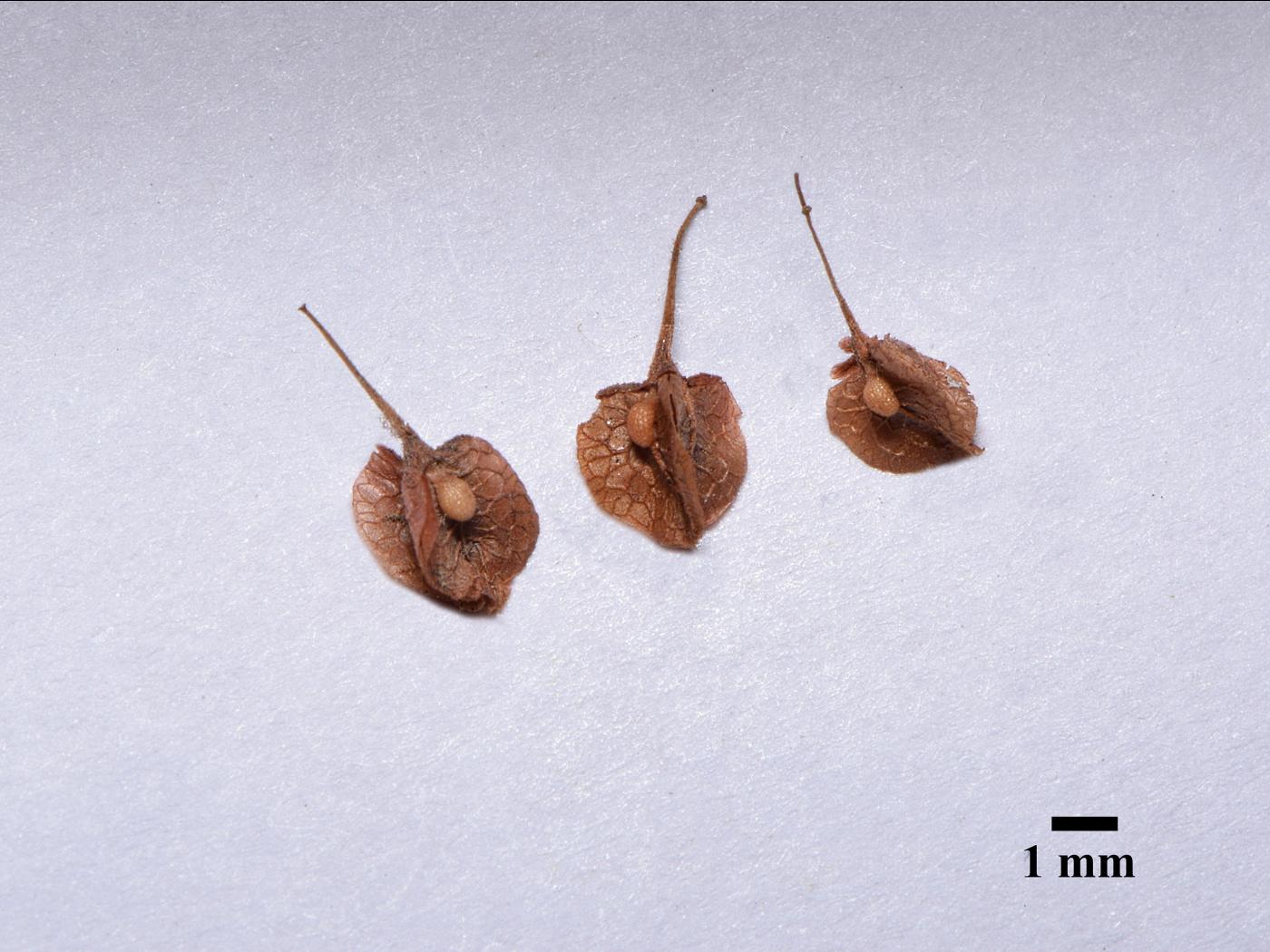 Le fruit est un akène triangulaire mesurant de 2 à 3 mm de longueur et de 1,5 à 2 mm de largeur. Il est de couleur rouge brunâtre avec une surface lustrée. L’akène est enfermé dans les tépales intérieurs.