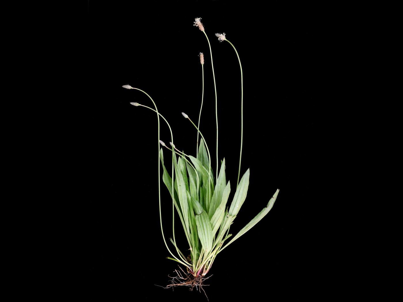 Le plantain lancéolé est une espèce vivace, originaire d’Eurasie. La tige est absente et la plante produit une rosette de feuilles basilaires. Le système racinaire est composé d’une racine pivotante peu développée et de racines fibreuses.