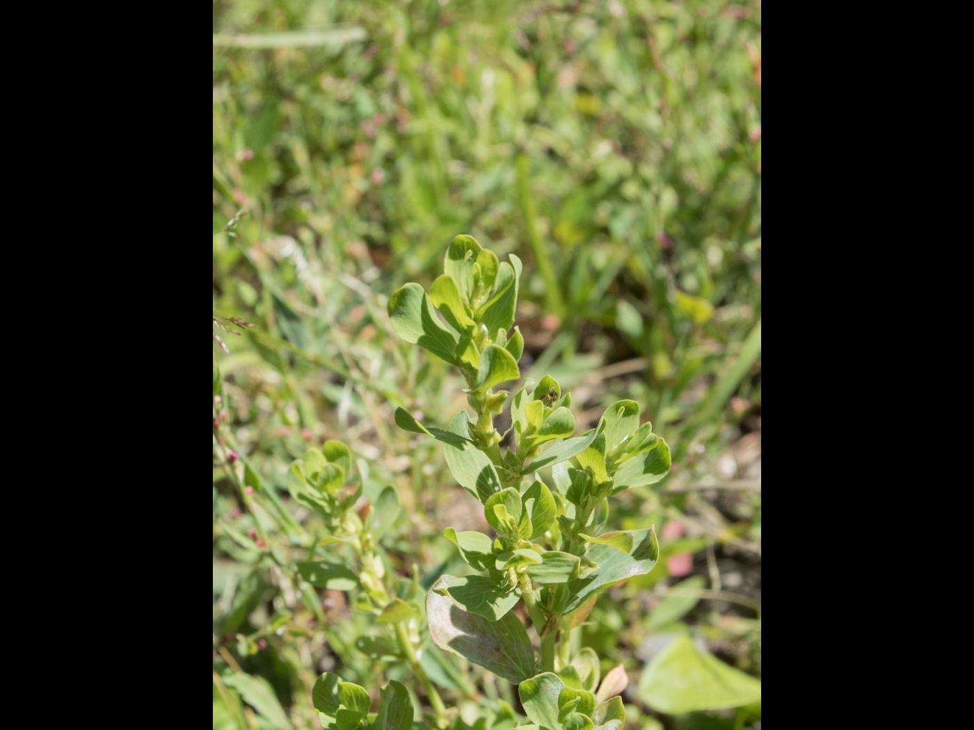 La renouée coriace est une plante annuelle, indigène en Amérique du Nord, mais introduite au Québec. La plante a un port buissonnant et un aspect bleuté. La tige est ramifiée et courte, elle mesure moins de 30 cm de hauteur. Le système racinaire est composé d’une racine principale peu ramifiée.