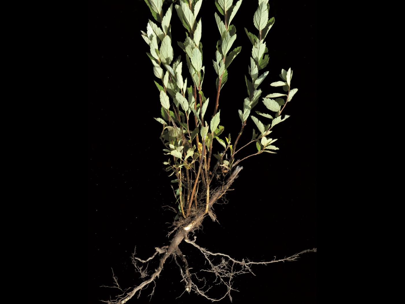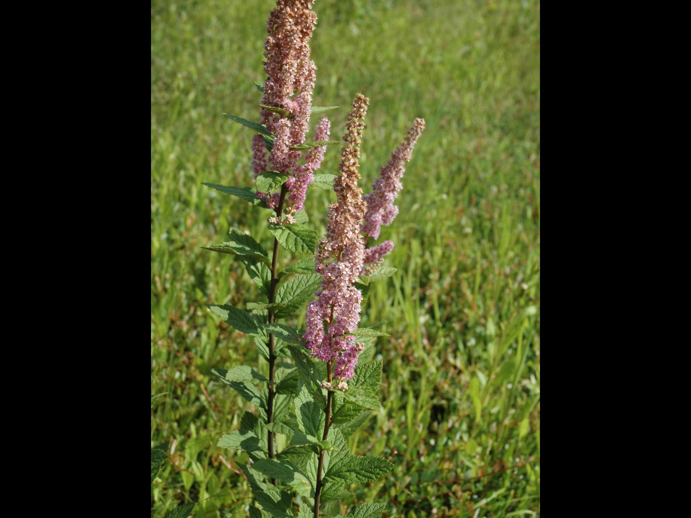 La spirée tomenteuse est un arbrisseau indigène au Québec. La tige est dressée ou ascendante, souvent ramifiée dès la base et mesure moins de 1 m de hauteur. L’écorce est de couleur brun orangé et, lorsque le plant est jeune, elle est tomenteuse. Le système racinaire se compose de rhizomes robustes.