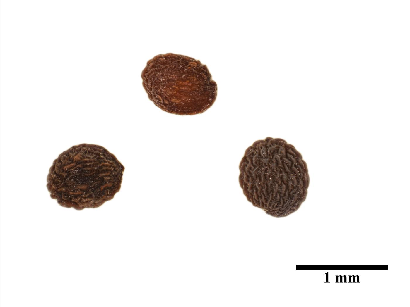 Le fruit est une capsule de couleur paille à maturité, de forme ovoïde et mesurant de 5 à 7 mm de longueur. Elle s’ouvre par 3 valves et contient de nombreuses graines. Celles-ci sont brun rougeâtre, rugueuses et de forme oblongue à orbiculaire. Elles mesurent de 0,8 à 1,2 mm de diamètre.
