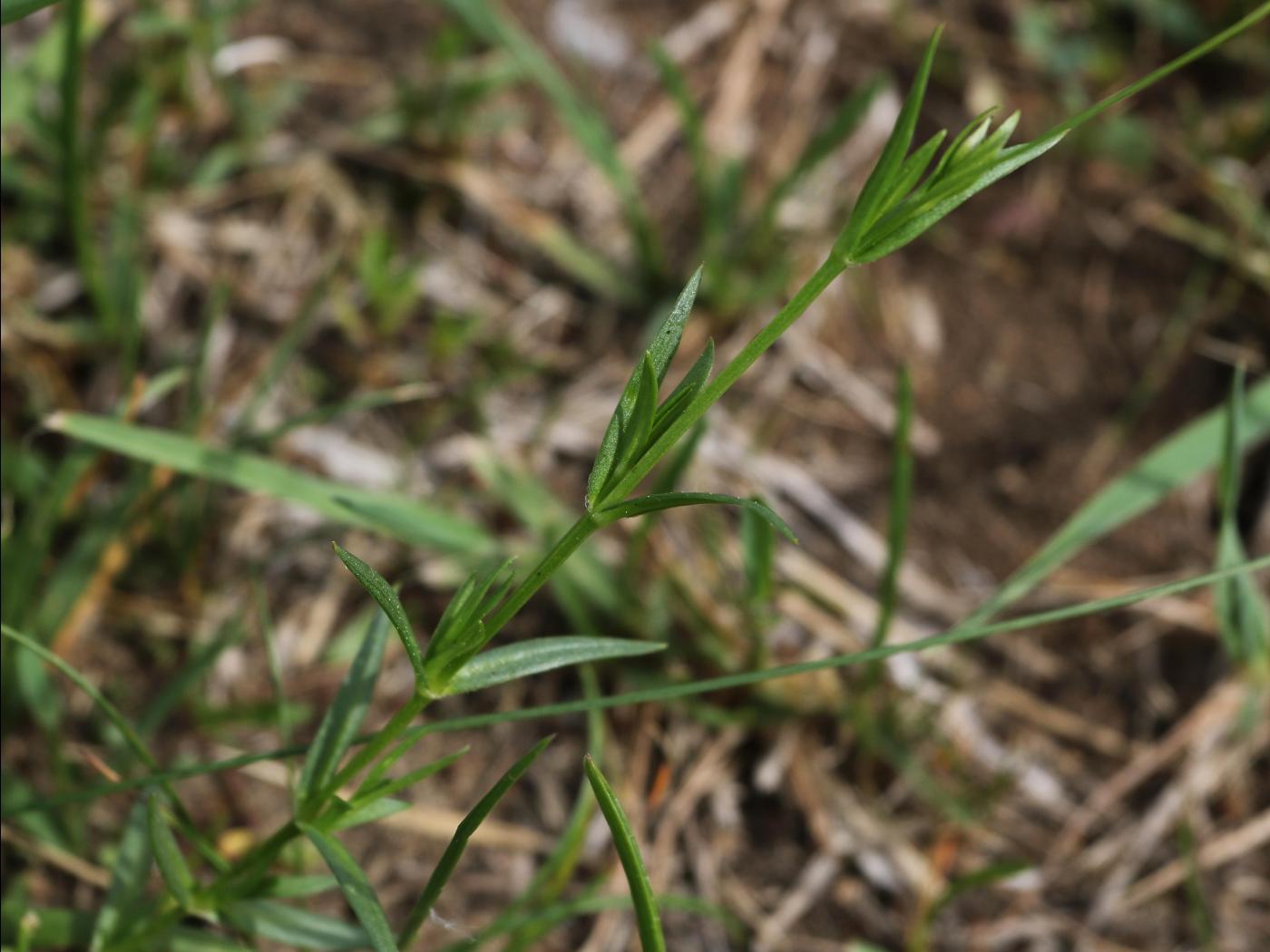 La plantule est à tige et à feuilles opposées. Les cotylédons sont de forme oblongue à allongée avec un sommet en pointe. Ils mesurent de 5 à 10 mm de longueur. Les premières feuilles sont entières, ovales et terminées en pointe. Elles ressemblent aux cotylédons. Des pousses végétatives proviennent des tiges couchées sur le sol dont les nœuds se sont enracinés.