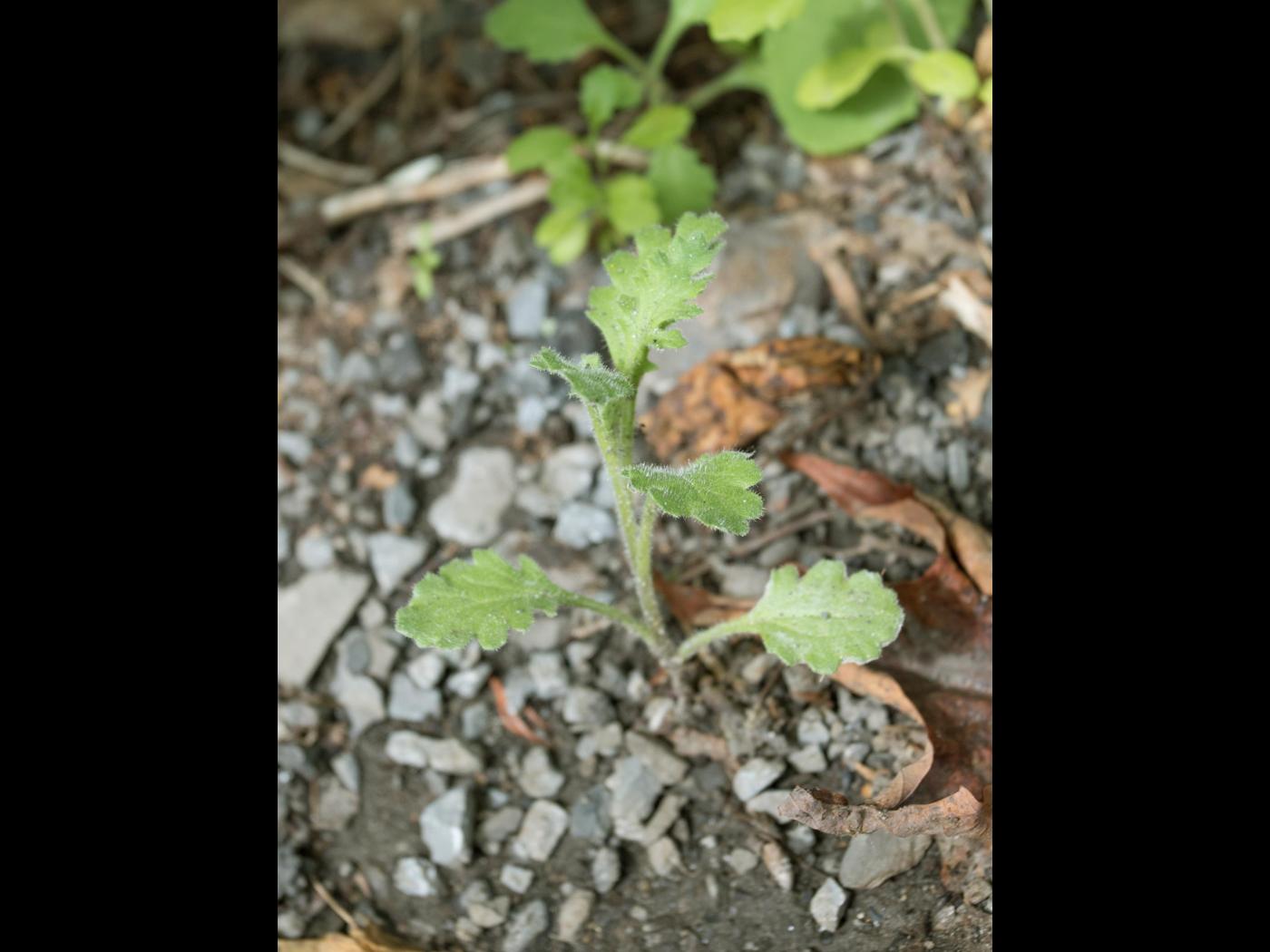 La plantule est à tige et à feuilles alternes. Toutefois, la tige est très courte, ce qui lui donne l’allure d’une rosette. Les cotylédons sont de forme oblongue et les premières feuilles ressemblent aux feuilles matures.