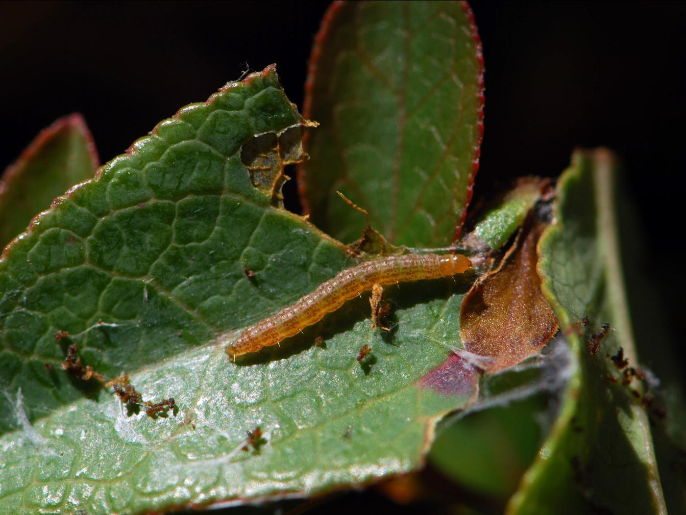 La chenille de cette espèce est généralement peu dommageable pour les bleuetières, mais des infestations importantes sont observées de façon sporadique. Les larves rassemblent plusieurs feuilles entre elles à l'aide de la soie qu'elles produisent pour en faire un genre de tube. Les feuilles présentes à la tête des plants sont particulièrement fréquemment attaquées. Le feuillage grignoté par les larves prend une teinte rougeâtre et de grandes quantités d'excréments sont observables à l'intérieur des tubes de feuilles. Les dommages au feuillage des plants ne causent généralement pas de perte de rendements. En effet, les rendements sont affectés surtout par le fait que de nombreux fruits peuvent être liés au feuillage par la soie des chenilles. La cueillette devient ainsi plus difficile et certains fruits doivent être abandonnés au champ. De plus, lors de fortes infestations, de nombreuses larves peuvent être ramassées lors de la récolte, ce qui cause des problèmes au moment de la transformation.