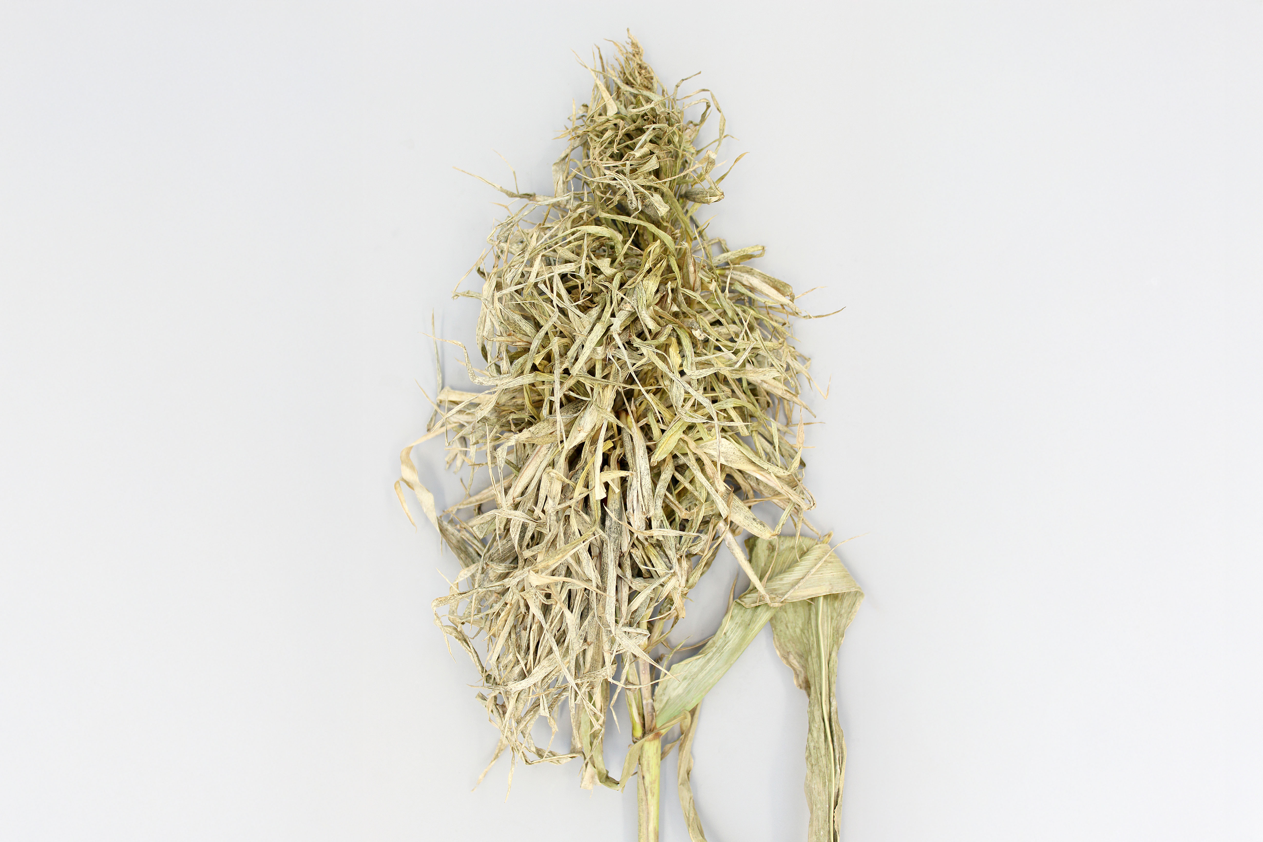 La panicule de maïs est complètement déformée. Il y a une prolifération de tissus foliaires au lieu des épillets habituels. Le résultat des tests de laboratoire n’a pas permis de détecter le champignon Sclerophthora macrospora, responsable du mildiou (''crazy top'') chez le maïs. Par contre les symptômes sont caractéristiques de cette maladie. Notez qu’aucun phytoplasme n’a été détecté des dommages. La conseillère agricole mentionne que moins de 1 % des plants sont affectés au champ. Les plants ont été remarqués, car ils étaient plus hauts que le reste de la culture.