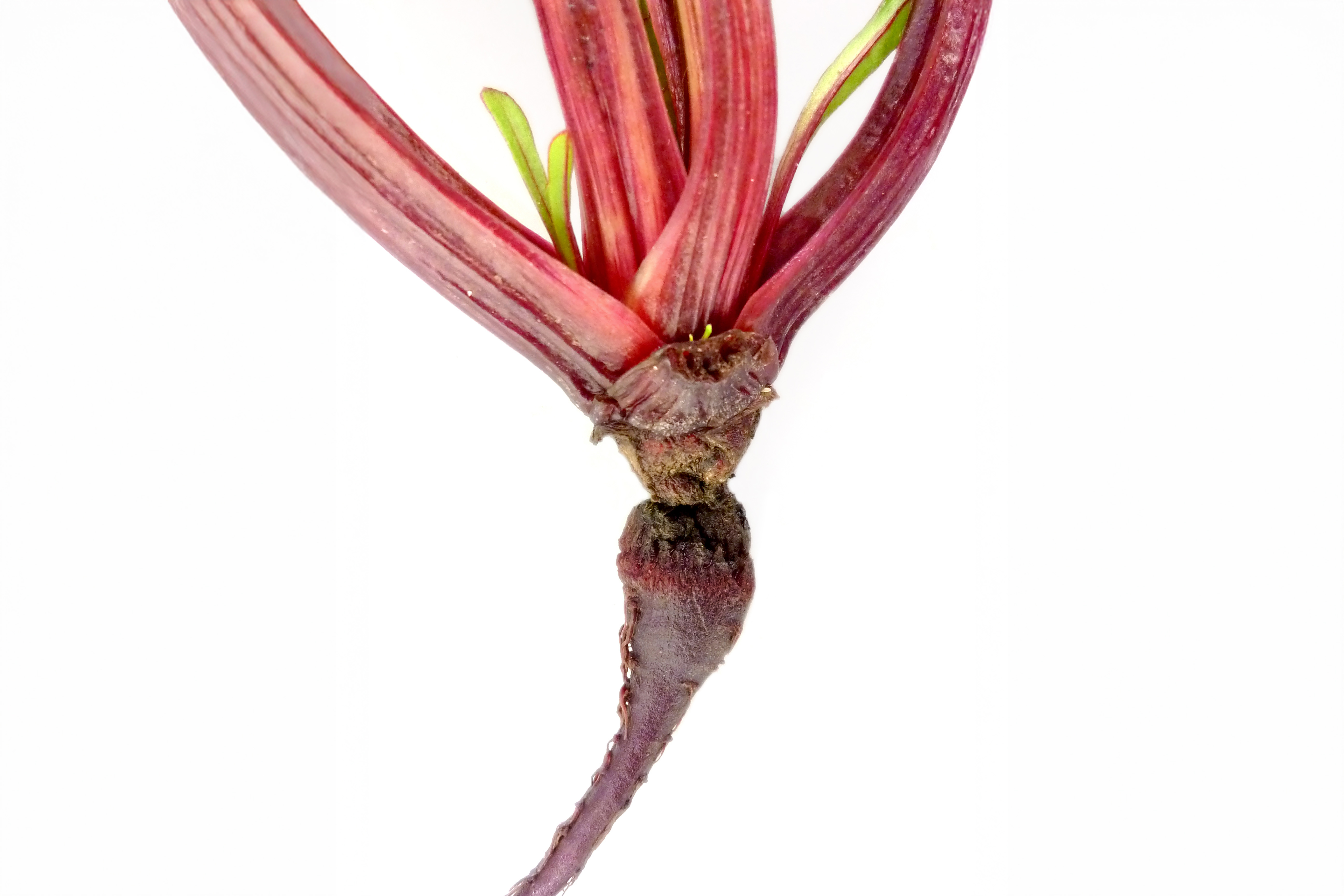 Sur une betterave potagère (cv 'Red Ace'), présence d’une sévère constriction brunâtre et liégeuse au collet. La racine est presque complètement détachée du collet. La racine est sans symptôme. Ce symptôme est typique d’un chancre de chaleur causé par des températures élevées à la surface du sol. Au champ, les plants affectés étaient cultivés en terre minérale et distribués en foyer, sur buttes. Il y avait probablement des îlots de chaleur à ces endroits.