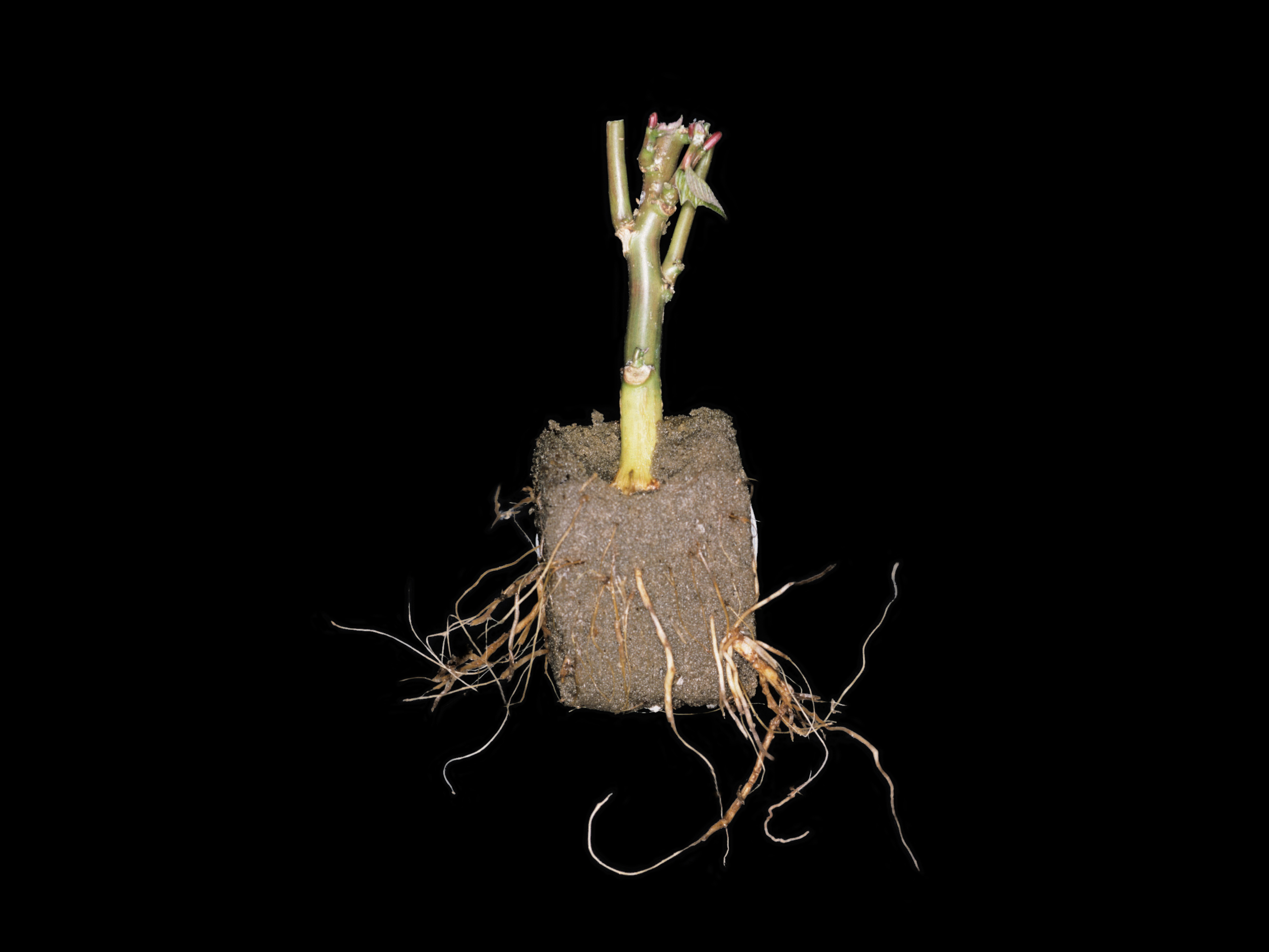 Sur un plant de poinsettia (cv 'Festival Red') cultivé en serre, le système racinaire est peu développé, les racines brunes et pourries. Le cortex racinaire se détache facilement de la racine. Les tests de laboratoire ont révélé la présence de Pythium sp. dans les racines et un pH acide (4,6 à 5,5). Les symptômes résultent probablement de la synergie de ces deux causes.