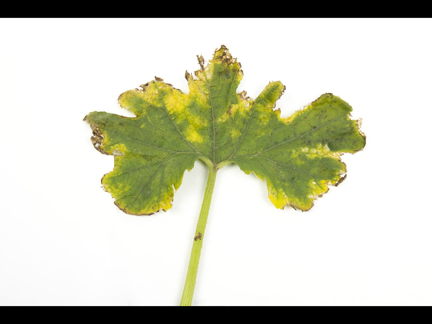 Feuille : anomalie de coloration (jaunissement à blanchiment entre les nervures ou jaunissement à la marge des vieilles feuilles puis dessèchement, brunissement et brûlure des tissus). Toute la feuille peut devenir jaune sauf les nervures qui demeurent vertes. Les vieilles feuilles sont plus affectées que les nouvelles. Les herbicides contenant de l’atrazine peuvent affecter tous les niveaux de feuilles.