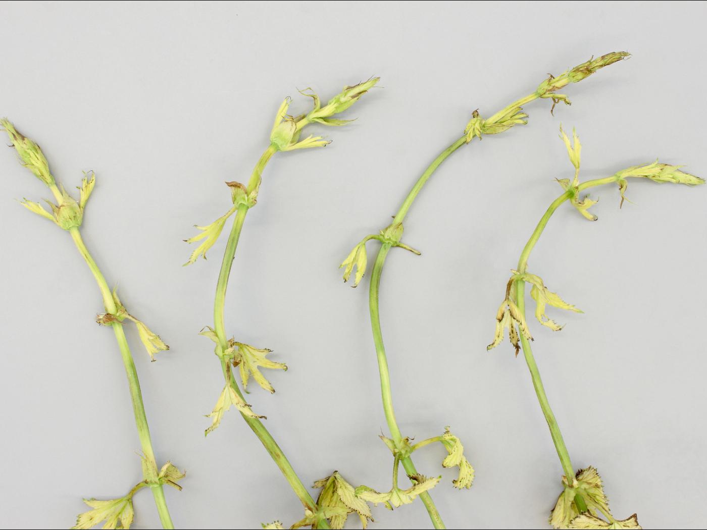 Plant : peuvent avoir un retard de croissance, être chétifs et rabougris. À l’occasion, les plants meurent.