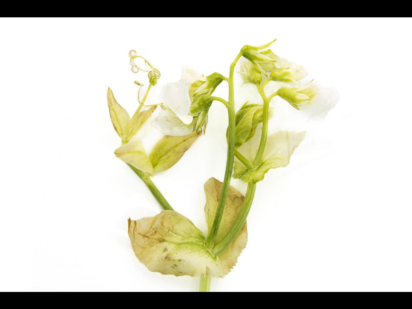 Description: La partie terminale d'un plant de pois vert montre une décoloration importante des feuilles et des vrilles. Le dosage chimique réalisé a permis de détecter la présence de glyphosate et de son métabolite de dégradation principal, l’AMPA (acide aminométhylphosphonique), dans les tissus des plants. Les concentrations mesurées étaient amplement suffisantes pour causer des symptômes de jaunissement/blanchiment sur les parties terminales, dans lesquelles le glyphosate s’accumule. Les symptômes sont ty… En savoir plus