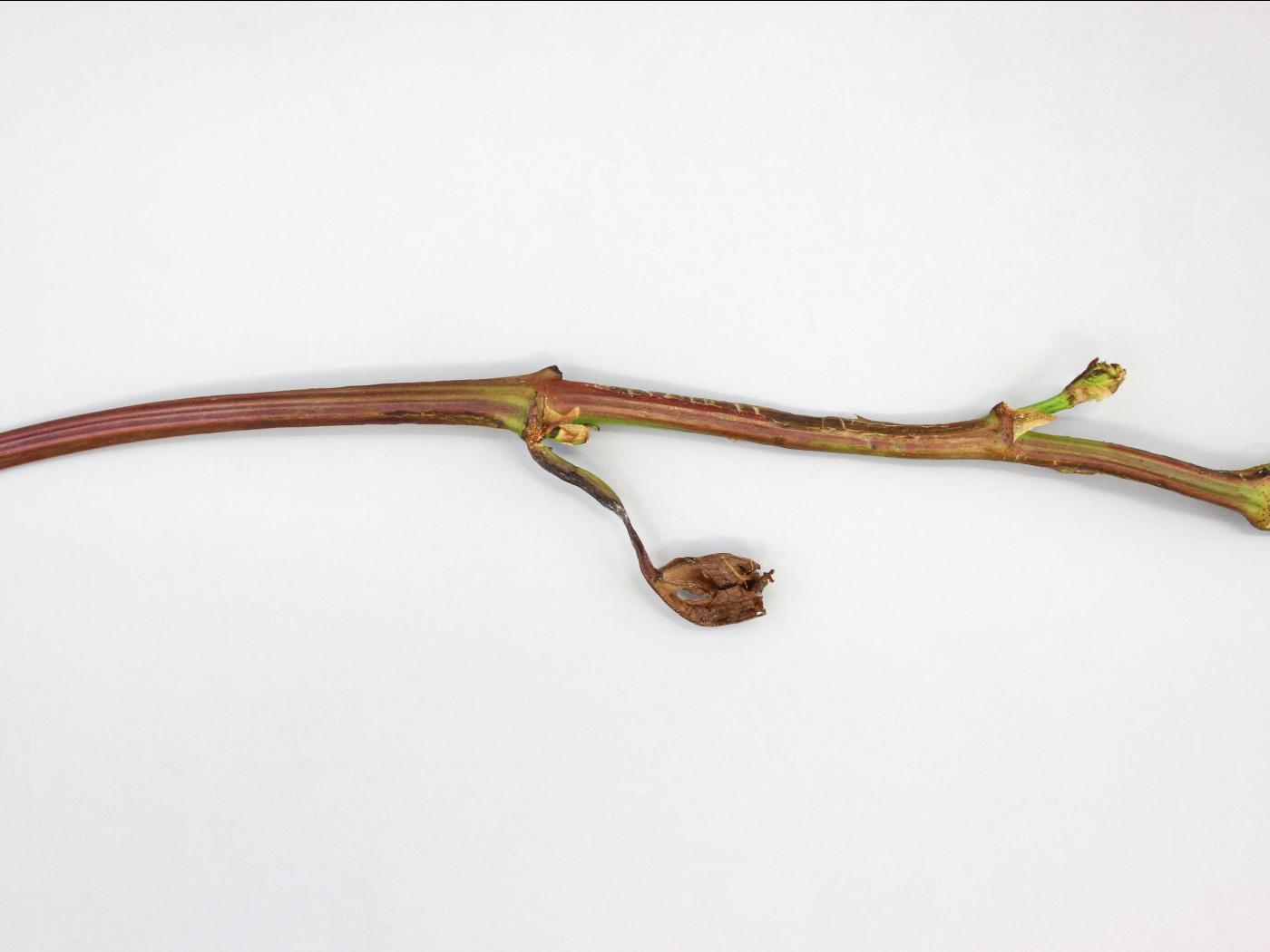 Légende: Brûlures des feuilles sur tige annuelle de vigne