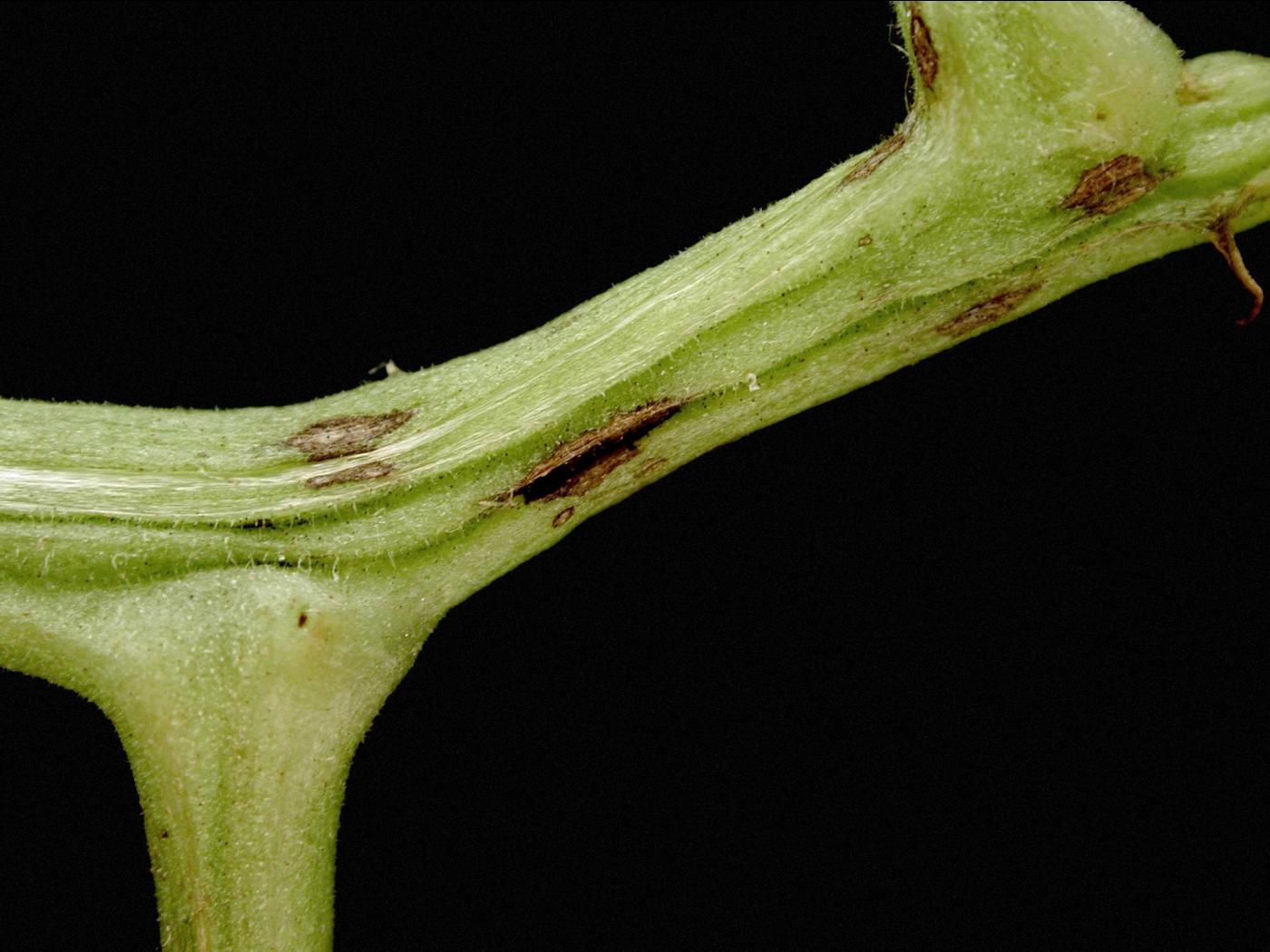 Tige : présence de lésions ou de taches brunes allongées distribuées aléatoirement sur l’épiderme ou au nœud.