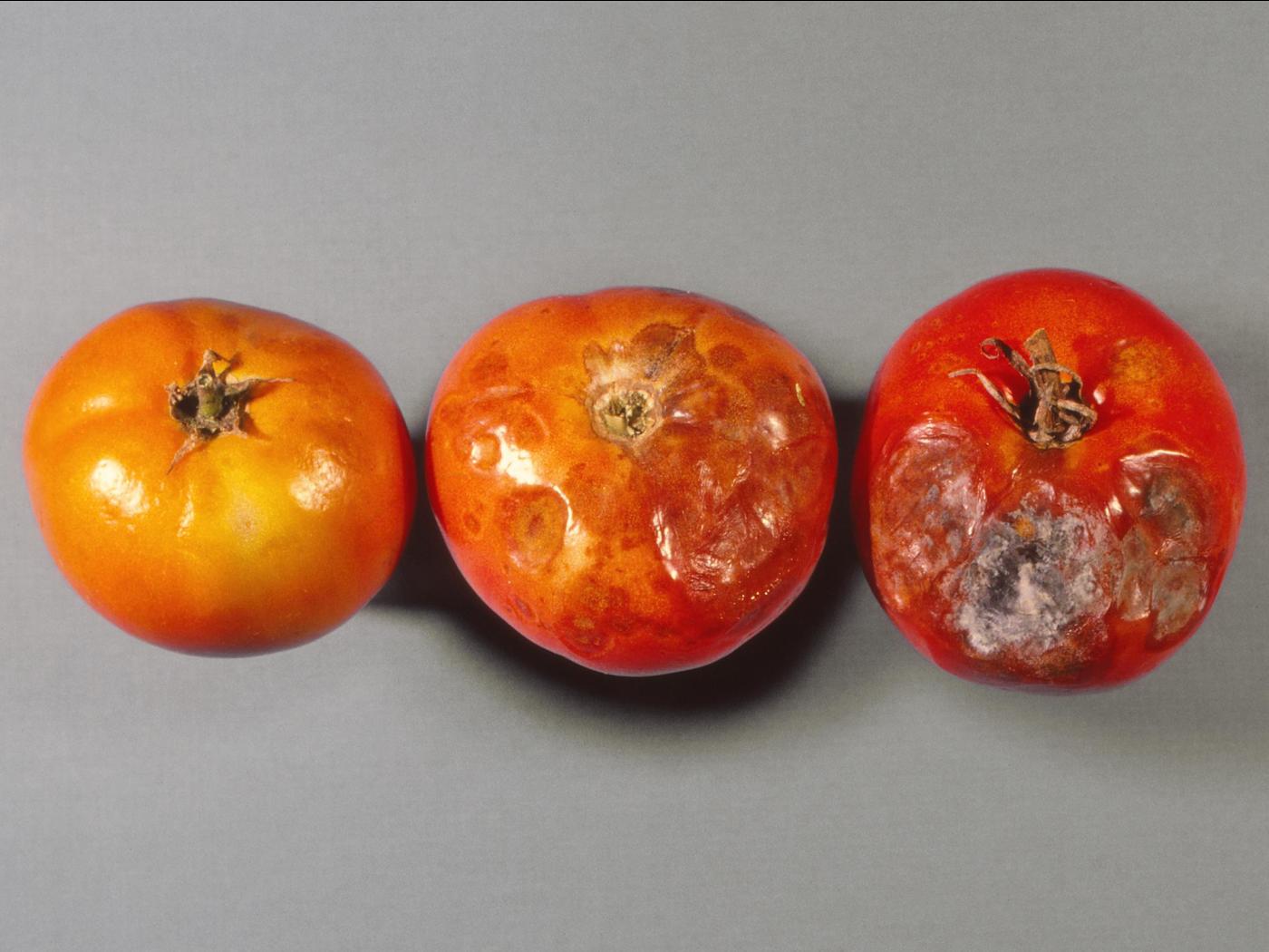 Fruit : dans la zone pédonculaire, à l’épaule de la tomate, présence de petites fentes plus ou moins concentriques ou de taches plutôt circulaires et dépressives s’agrandissant avec le temps. La surface des fruits la plus exposée à la pluie froide est la plus vulnérable. La zone affectée est souvent rugueuse, d’apparence liégeuse, et la maturité est souvent interrompue, l’épiderme demeurant vert ou devant noir, parce que colonisé par des organismes secondaires responsables de la pourriture des fruits. En de rares occasions, l’épiderme rougit, mais les microfissures demeurent apparentes.
