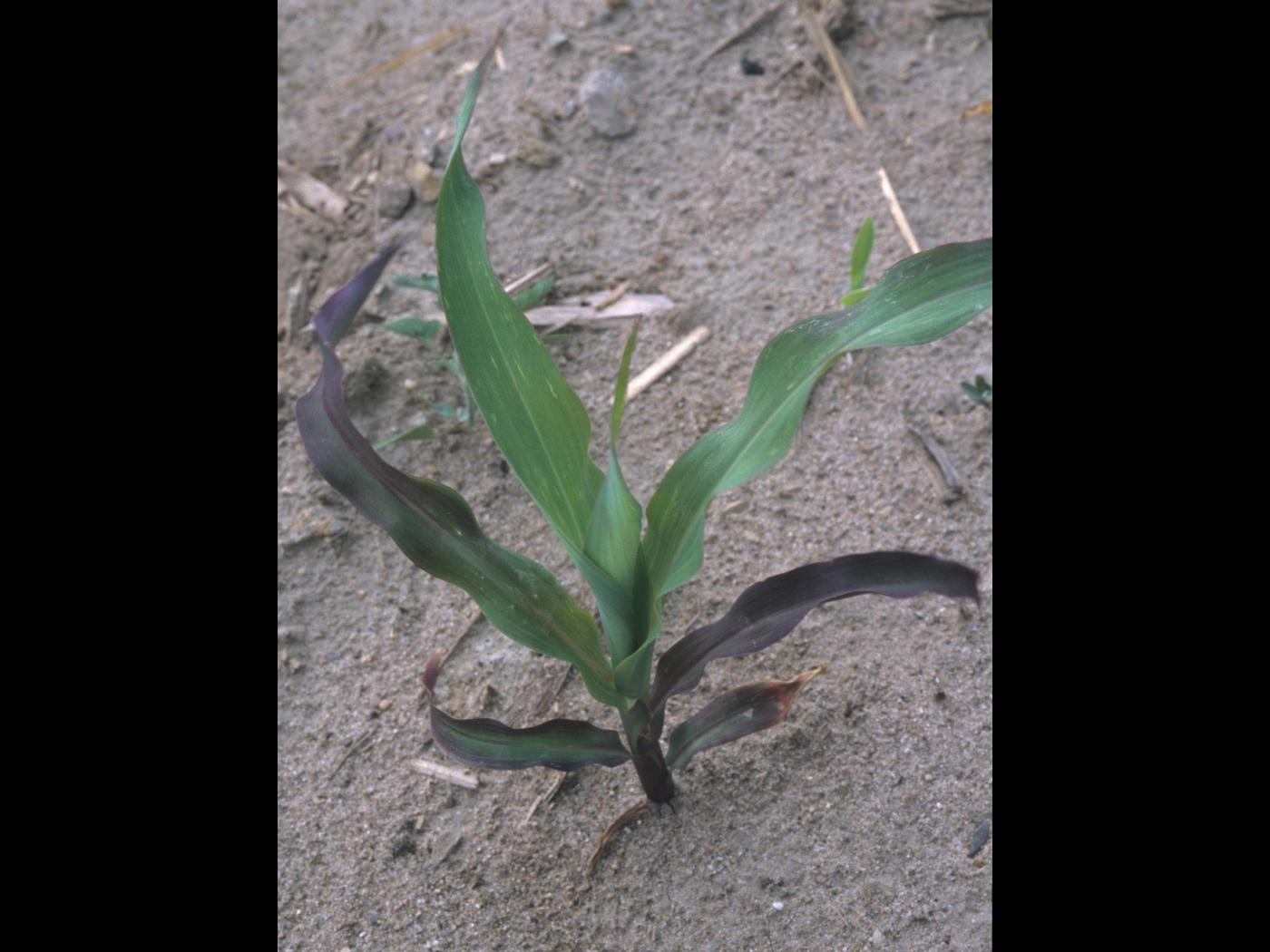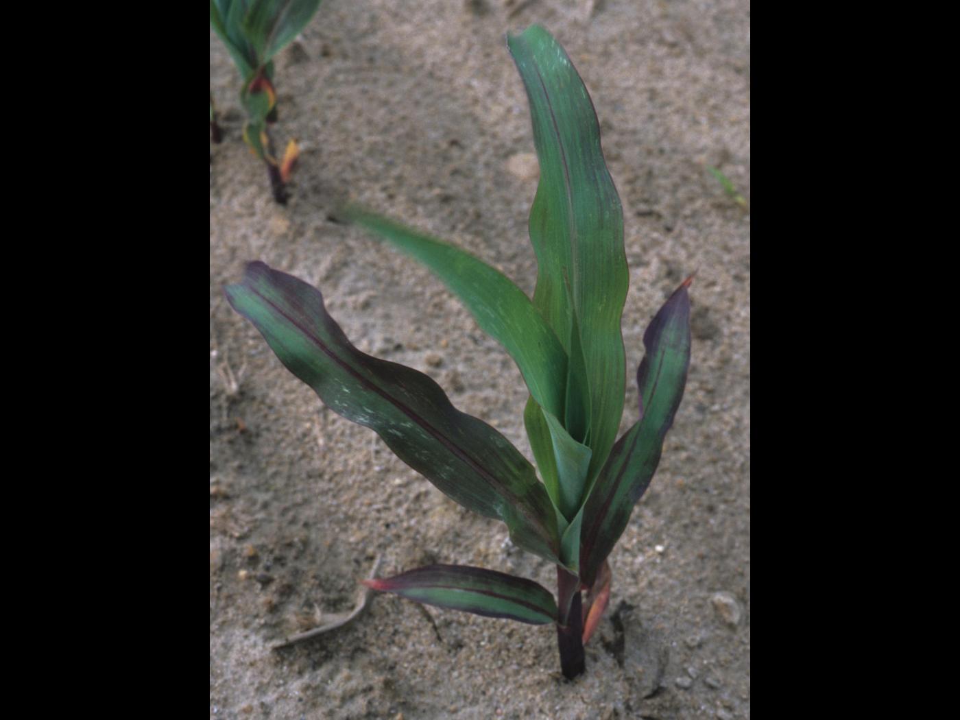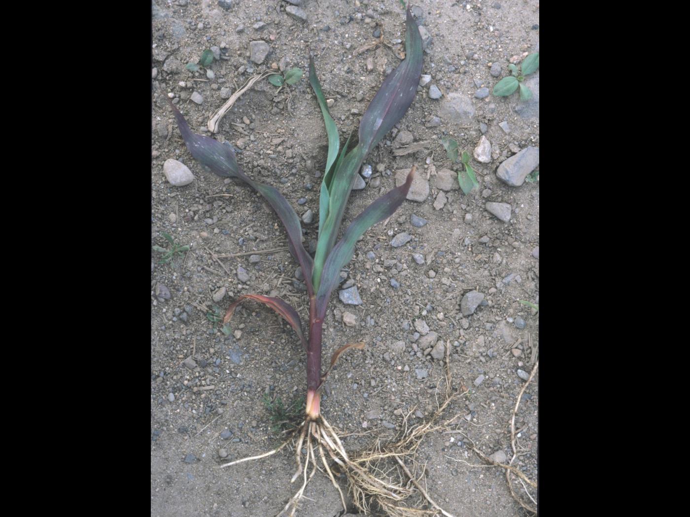 Les dommages causés par le froid peuvent être confondus avec une carence en phosphore. Les plants de maïs qui ont une carence en phosphore sont distribués d’une manière éparse au champ ou ont plus de 6 à 8 feuilles. La carence en phosphore peut être induite lorsqu’elle survient dans des sols froids lorsque les plants sont au stade plantule. Si tous les plants sont mauves, les dommages sont de nature génétique.