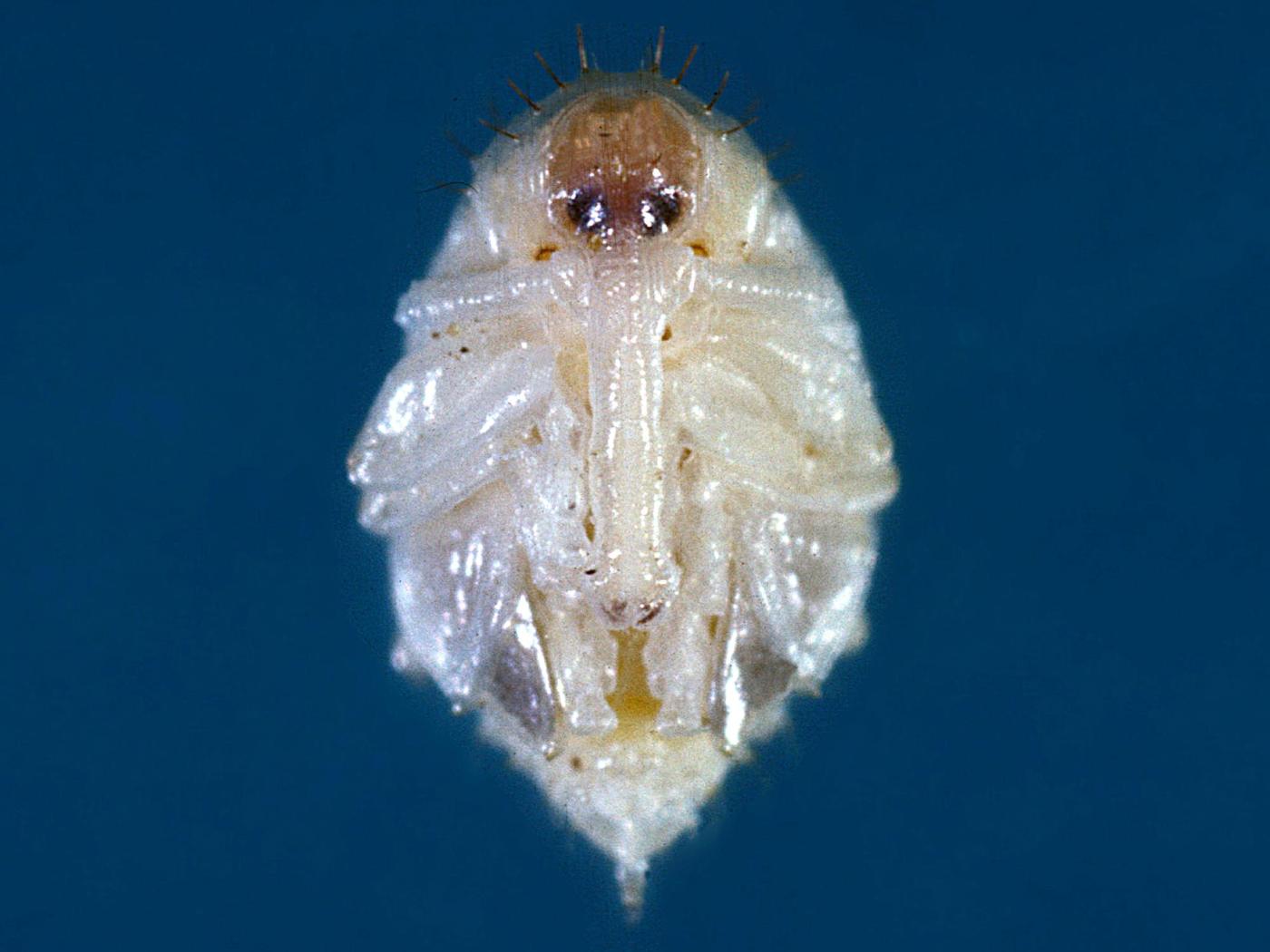 Pupe : 2,2 à 2,7 mm; le corps est de couleur crème; la tête est plus foncée.