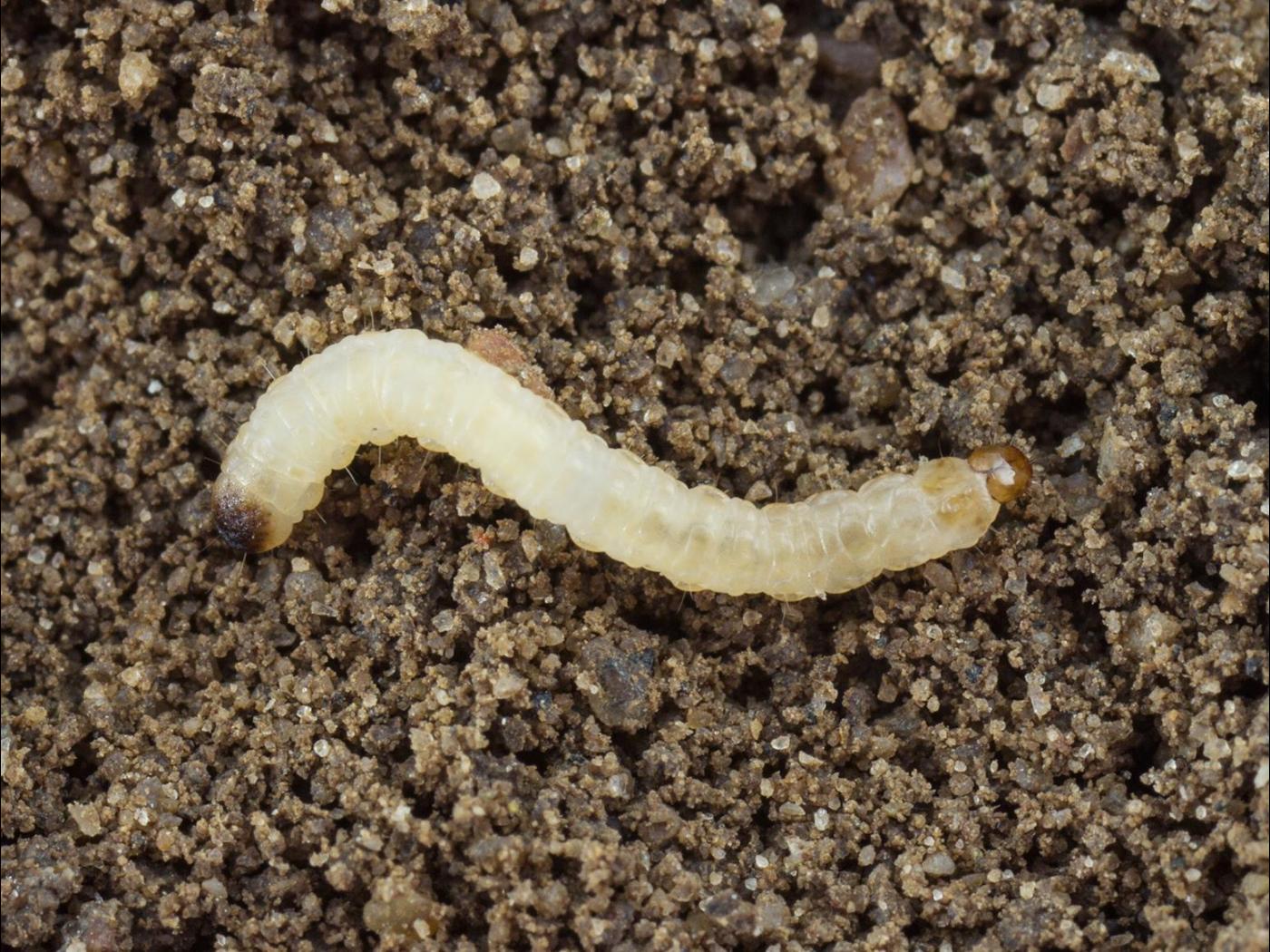 Larve : 10,0 à 15,0 mm à maturité; le corps est très allongé et de couleur blanc crème; près de la tête, trois paires de minuscules pattes sont présentes; la tête, la plaque thoracique ainsi que la plaque annale sont brunes.