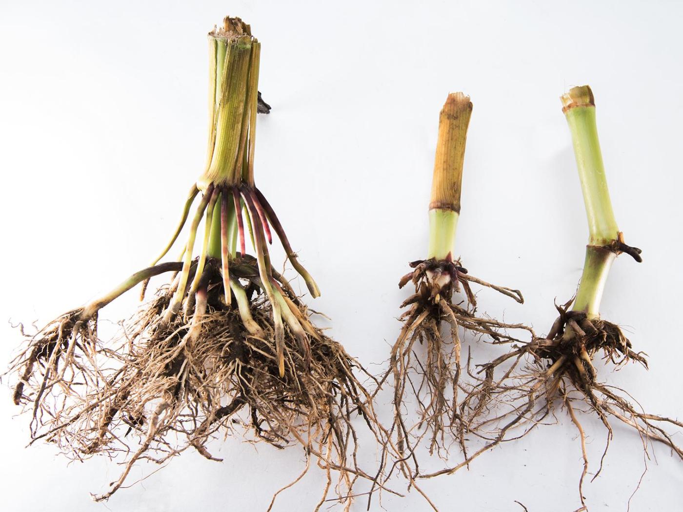 Légende: Dommages causés par la chrysomèle des racines du maïs de l'ouest