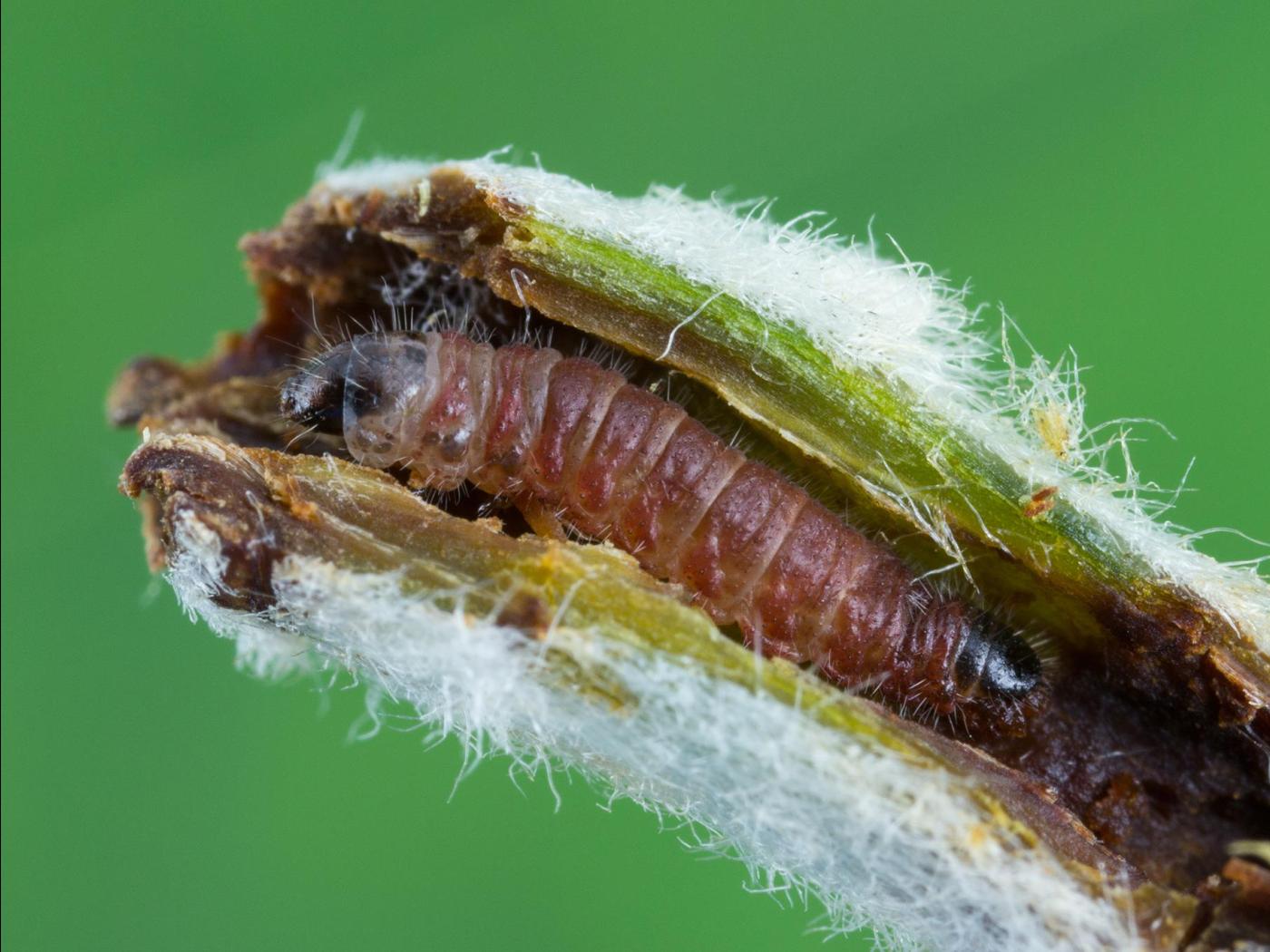 Légende: Larve dans une jeune tige de pommier
