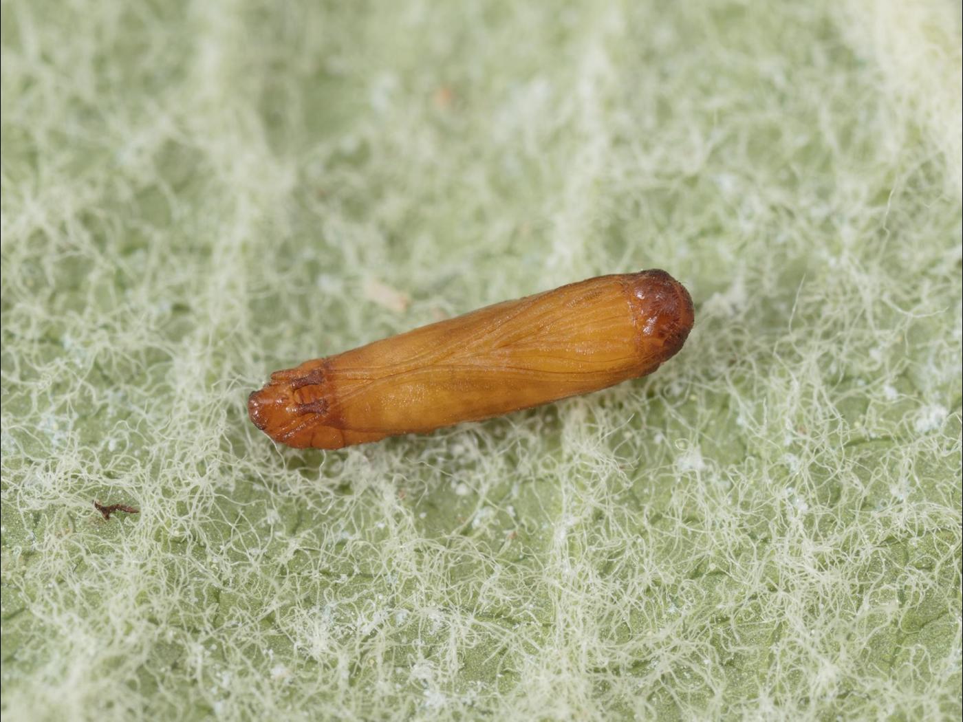 Chrysalide : 5,0 à 6,0 mm; la cuticule est brun doré et plus foncée au niveau de la tête; deux petits crochets sont présents à l’extrémité de l’abdomen.