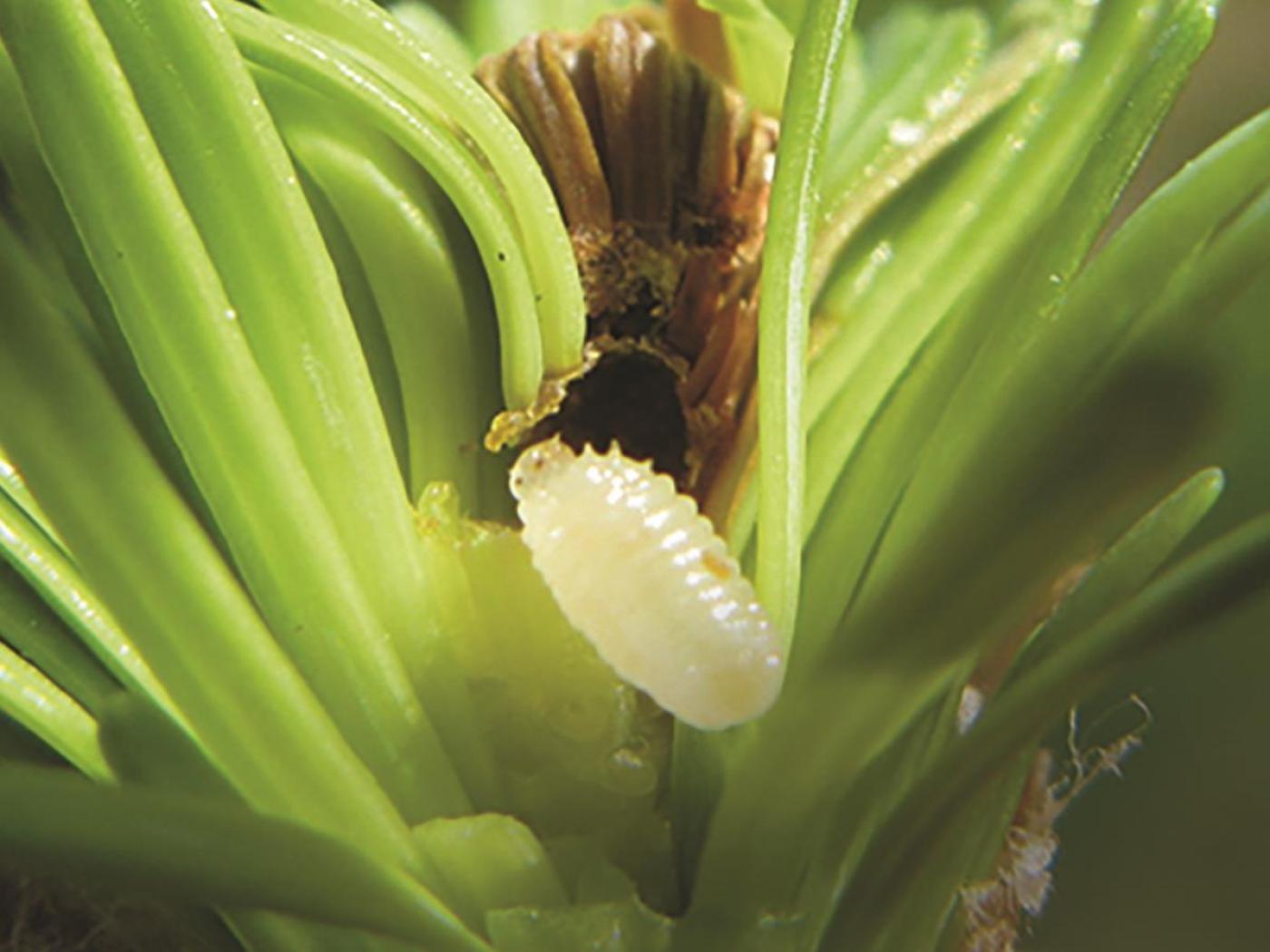 Il est possible de dépister les adultes à l’aide de pièges jaunes collants utilisés au printemps. On peut aussi faire l’observation de la larve à l’intérieur des pousses flétries vers la fin de mai.