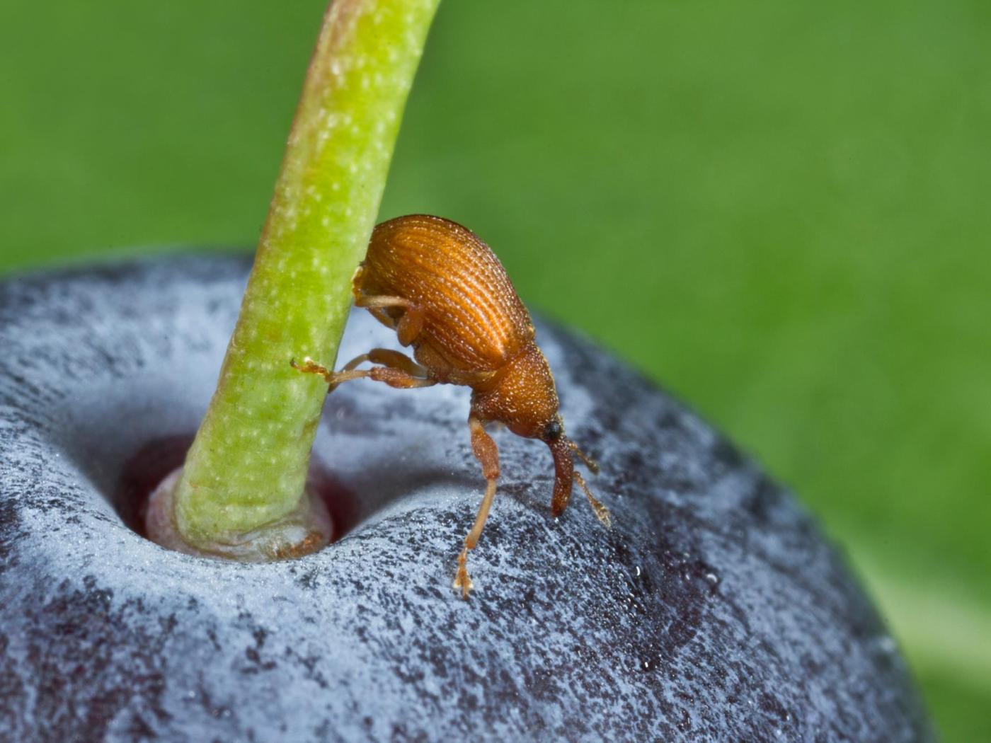 Cette espèce est associée aux plantes du genre Vaccinium. L'adulte cause l'apparition de taches brunes sur les fruits en grignotant la surface de ceux-ci. Ce sont cependant les larves qui causent les dommages les plus considérables dans les cultures de petits fruits, principalement le bleuet en corymbe. Les fruits infestés par les larves mûrissent anormalement, se déforment et tombent de façon prématurée. Cet insecte cause des infestations sporadiques qui peuvent se solder par une baisse de rendements. Il n'est cependant pas considéré comme étant un ravageur d'importance puisque les dommages qu'ils causent sont généralement limités à de petites surfaces.
