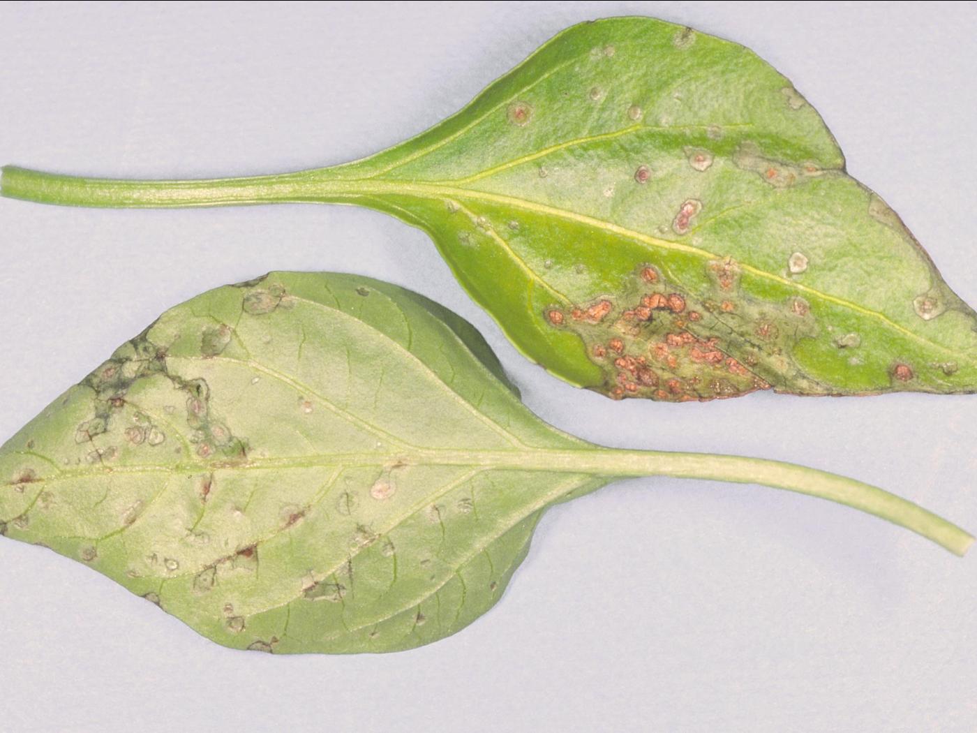 Contrairement à la tomate, les symptômes observés en serre et en champ sont similaires et les infections sur la tige sont rares.