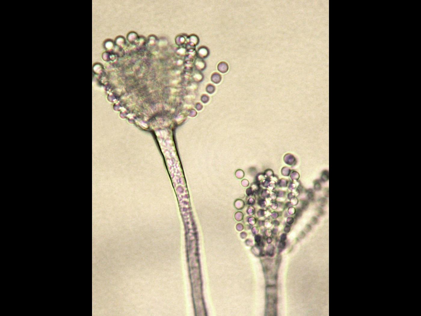 Légende: Têtes conidiennes et conidiophores d'Aspergillus sp.
